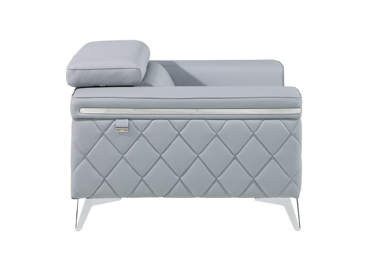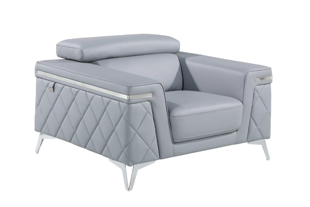 Stylish, elegant and fully functional, the 42-inch light gray and silver top grain leather club chair adds a touch of panache to any set up. Built to last this club chair is finished in solid light gray top grain leather to give your room a great update. The sturdy inner frame is built with high quality solid wood, includes armrests, and features a tight back that is accented with soft and comfortable cushioning. 38-inch h x 42-inch w x 42-inch d.