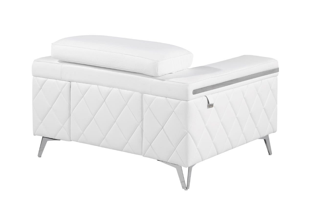 Unique and decorative, this 42-inch white and silver top grain leather club chair will leave a lasting impression. Built to last this club chair is finished in solid white top grain leather to give your room a great update. The high quality solid wood inner frame flaunts convenient armrests and a tight back that are complimented by soft and comfortable cushioning. 38-inch h x 42-inch w x 42-inch d.