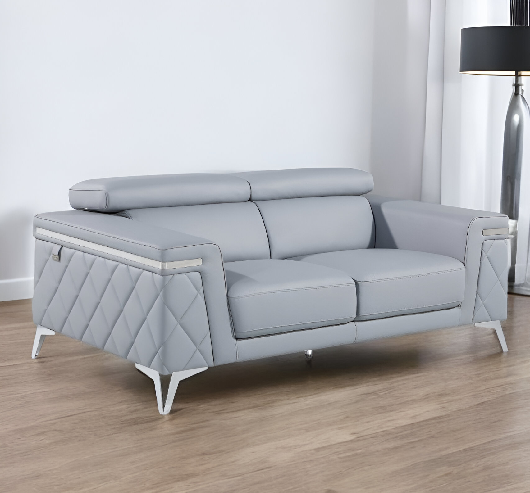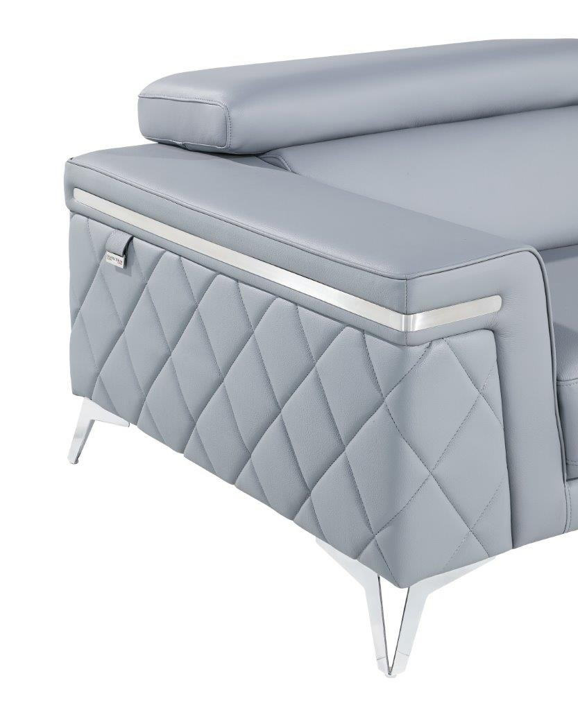 Superior construction from fabulously soft and high grade leather gives this 70-inch light blue and silver metallic top grain leather loveseat a leg up on the competition. The high grade premium leather used makes your lounging luxuriously comfortable and adds an elegant appeal to your space. Square arms offer a comfy place to rest and give this piece some interest and shape. Silver metallic steel legs effortlessly elevate the room and add a touch of contemporary design. A great showpiece for your room, this sofa is a must have. 38-inch H x 70-inch W x 42-inch D