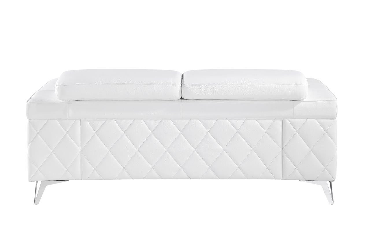 An interior designer's dream, this buttery soft high grade leather 70-inch white and silver metallic top grain leather loveseat will bring just the right touch to your space. The high grade premium leather used makes your lounging luxuriously comfortable and adds an elegant appeal to your space. Square arms offer a comfy place to rest and give this piece some interest and shape. Silver metallic steel legs effortlessly elevate the room and add a touch of contemporary design. A great showpiece for your room, this sofa is a must have. 38-inch H x 70-inch W x 42-inch D
