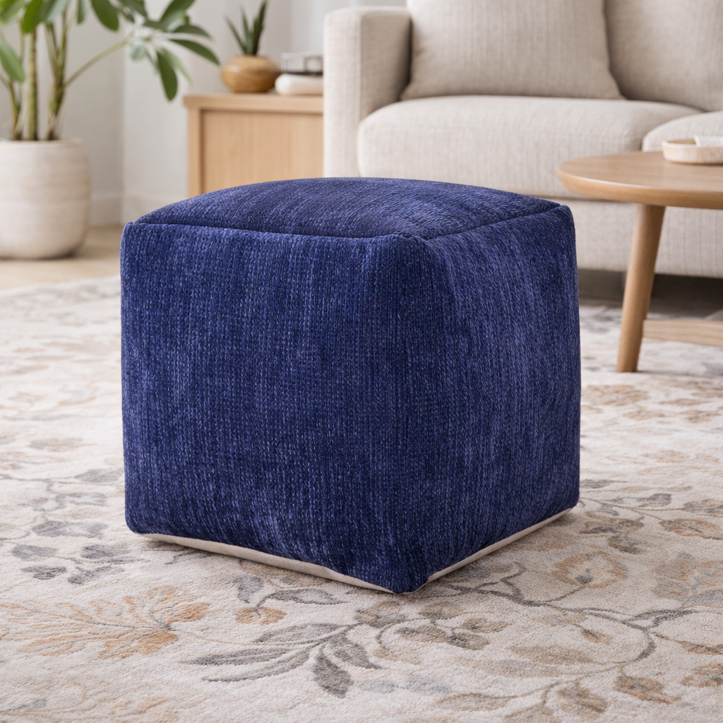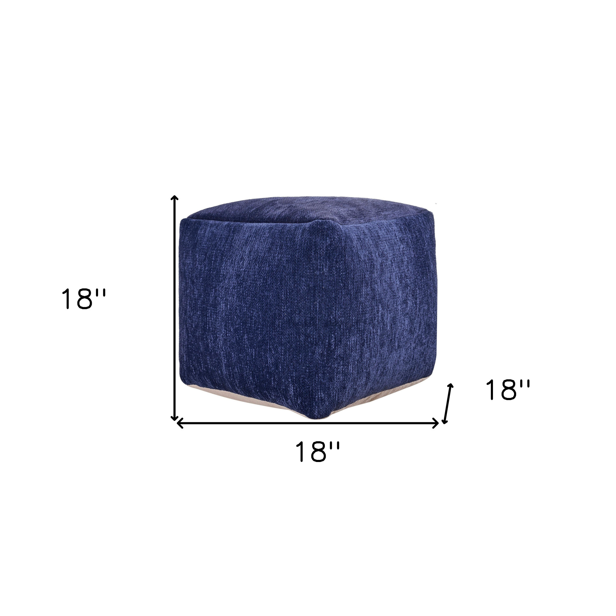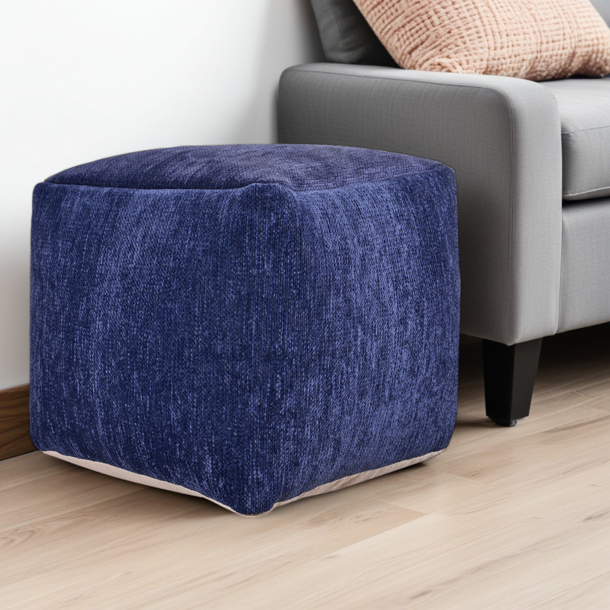 Practicality and fashion mix together with this handy 18-inch blue chenille cube pouf ottoman. Add chic style to your space with this fun pouf that not only looks cool but can be a great foot rest or extra seat when needed. Expertly upholstered with padding in a soft solid color chenille, this ottoman is as comfortable as it is good looking. Ottomans are multi-functional additions to your space that add fashion and practical value. 18-inch h x 18-inch w x 18-inch d.