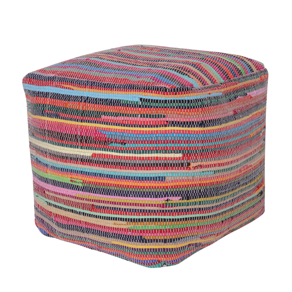 cotton cube striped pouf ottoman, cube striped pouf ottoman, striped pouf ottoman, 18" red black cotton cube, black cotton cube striped pouf |