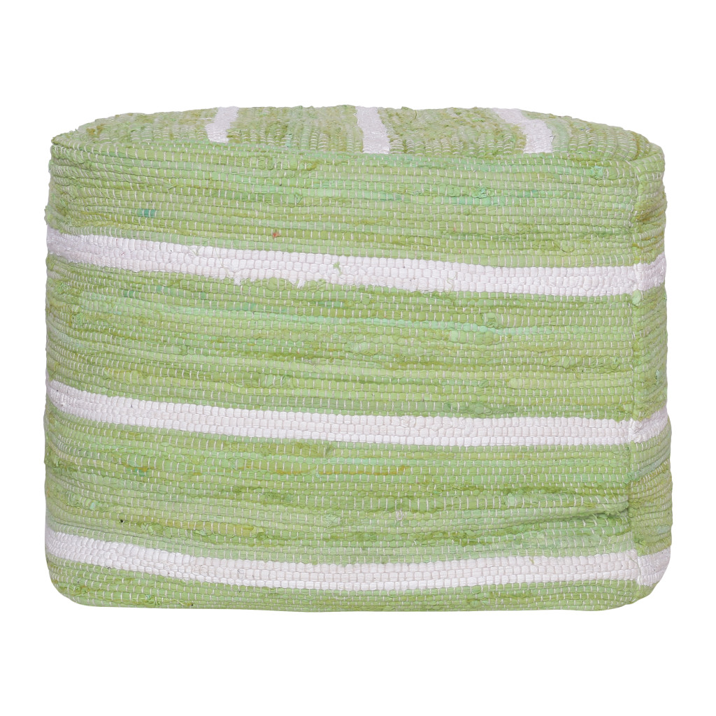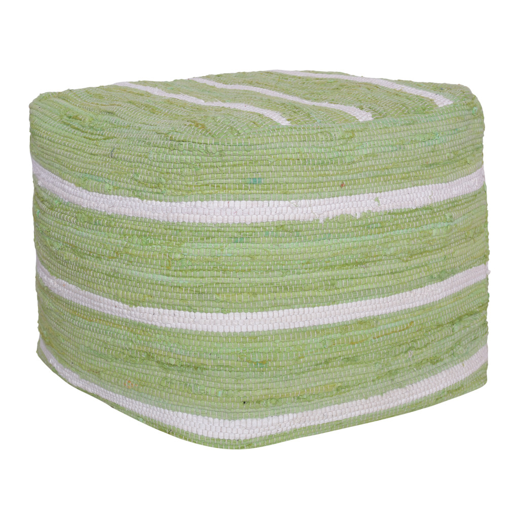 cotton cube striped pouf ottoman, cube striped pouf ottoman, striped pouf ottoman, white cotton cube striped pouf, 18" green white cotton cube |