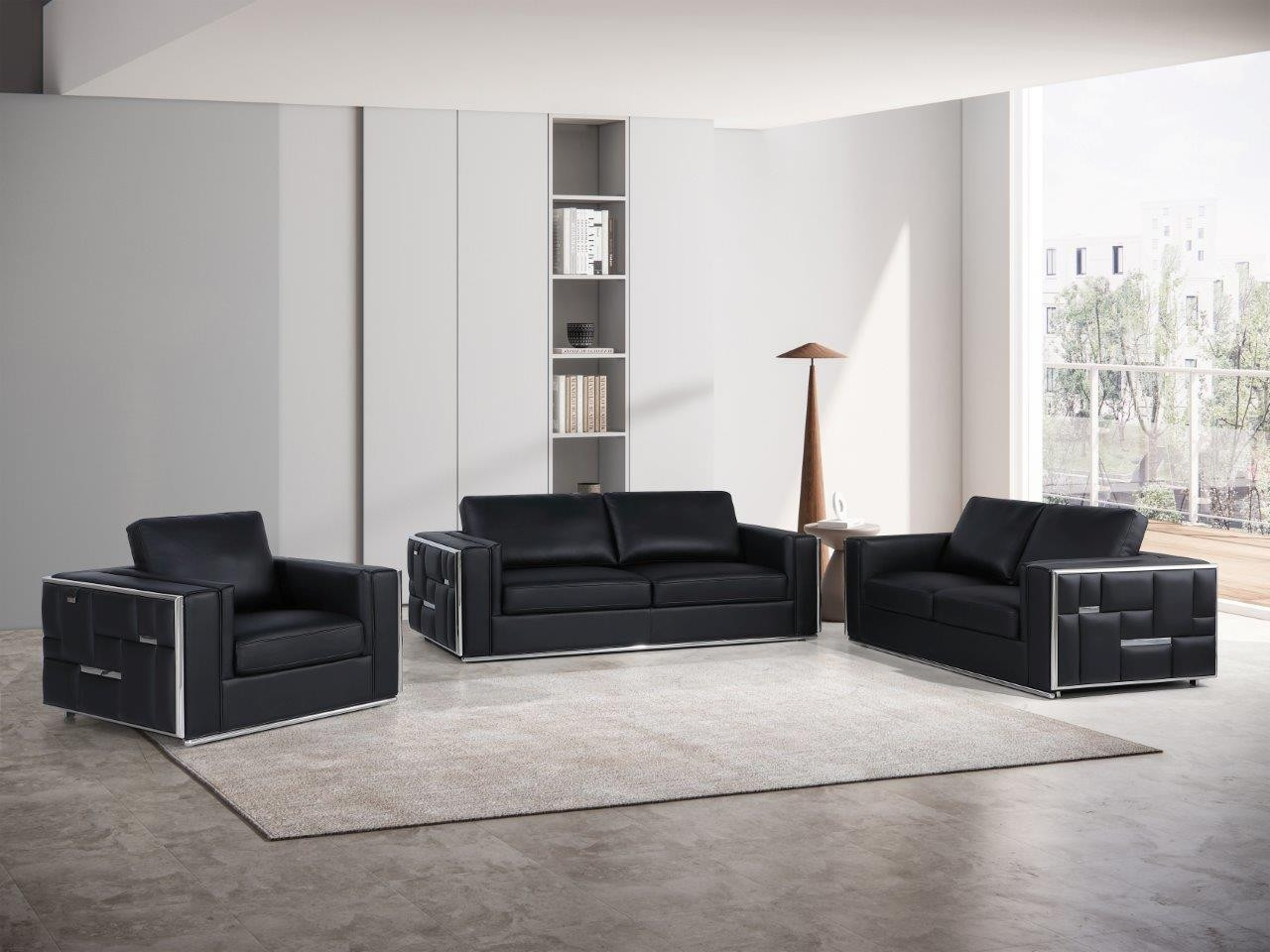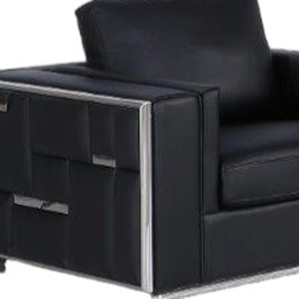 When it comes to indoor seating, this black top grain leather five person seating set has everything you need to get set and ready to relax. Indulge in the blissful comfort of a seating set featuring stylish top grain leather upholstery that is a delightful combination of durability and design. Web suspension seat construction provides optimal support and cushioning, offering a comfortable seating experience by evenly distributing weight and reducing pressure points. Ready to re-decorate. This set is an obvious choice to fill your space with style and class. 40-inch H x 89-inch W x 34-inch D