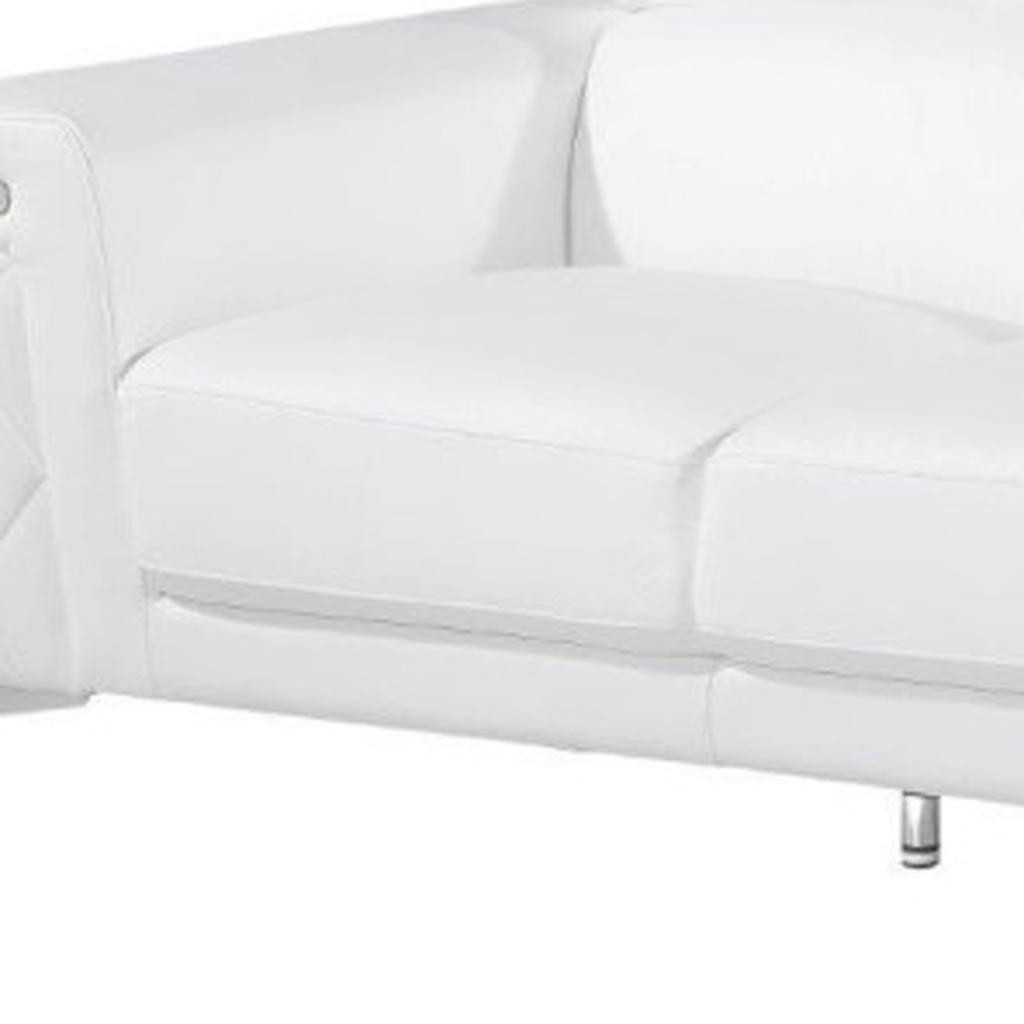 Step into a world of unparalleled seating comfort that is sure to dazzle even the toughest critic with our remarkable two piece indoor white italian leather five person seating set. Upholstered in supple and luxurious genuine leather, this set has a rich and warm appeal. The inclusion of a loveseat into your mix allows a fashionable seating option in a compact design. Gather with family and loved ones with this seating set that will bring you all together. 42-inch H x 89-inch W x 38-inch D