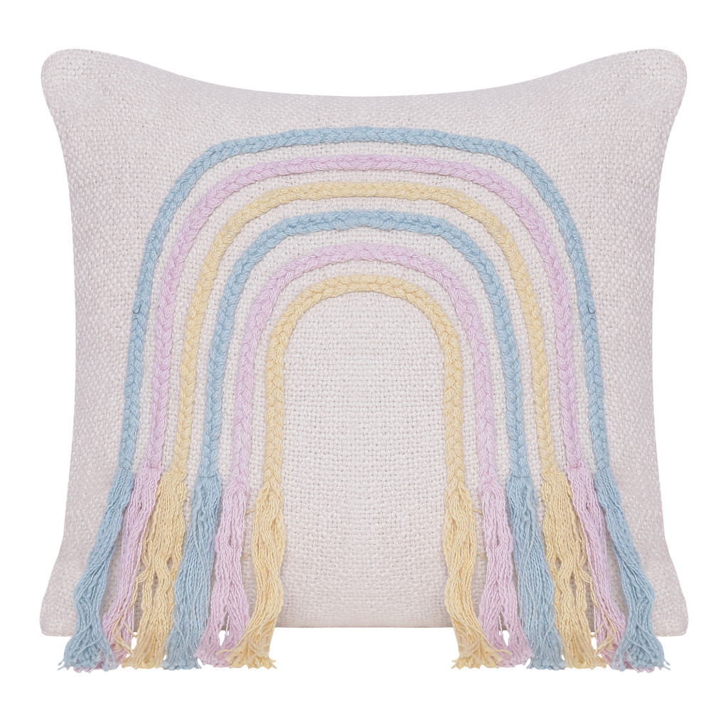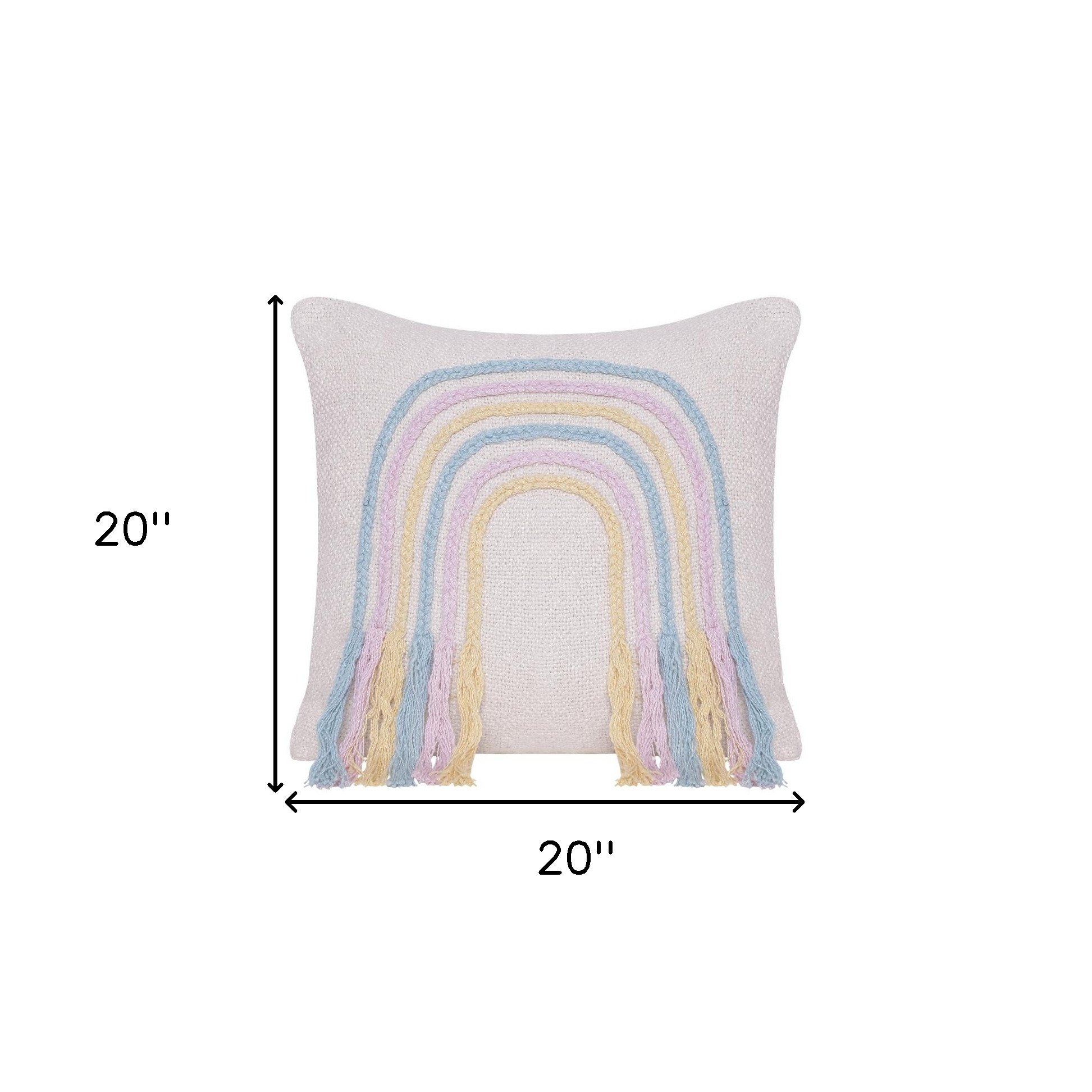Unique and decorative, this comfortable 20-inch x 20-inch blue and off white braided cotton zippered pillow with fringe will leave a lasting impression. This blue and off white hued piece represents quality construction, expertly made from premium 100% cotton that is not only long lasting but super soft to the touch as well. Fun and decorative fringe add some high end and hand-crafted textural designer touches. Super soft and built to hold its shape, this polyfill pillow is a great option. For anyone that loves to decorate or accent their space with color and texture. A great decorative accessory for your favorite chair, to accent your sofa, or to use as part of your bed ensemble. 20-inch H x 20-inch W x 4-inch D