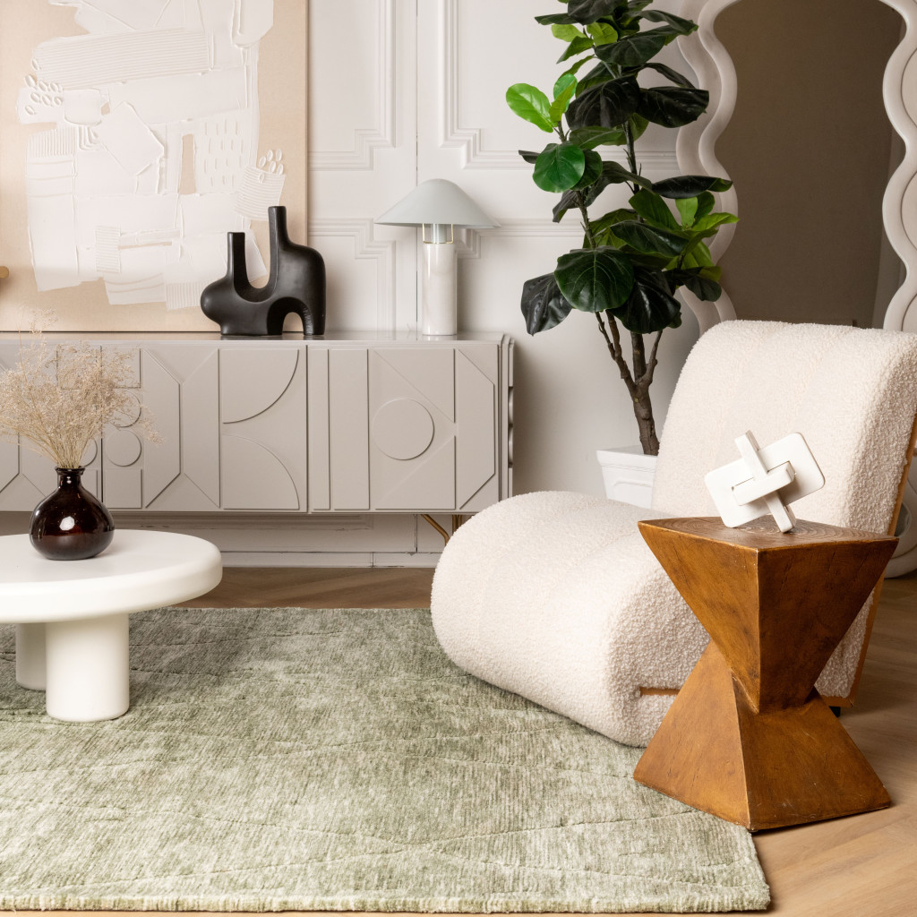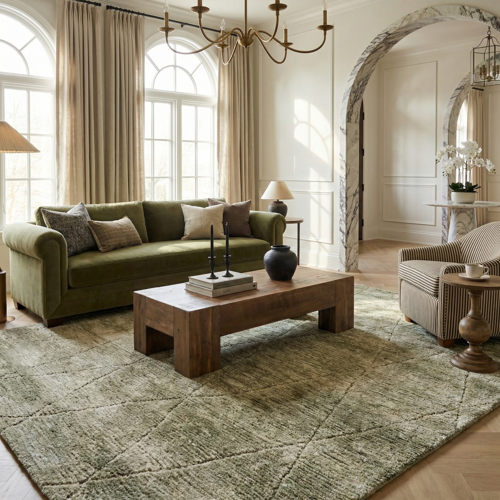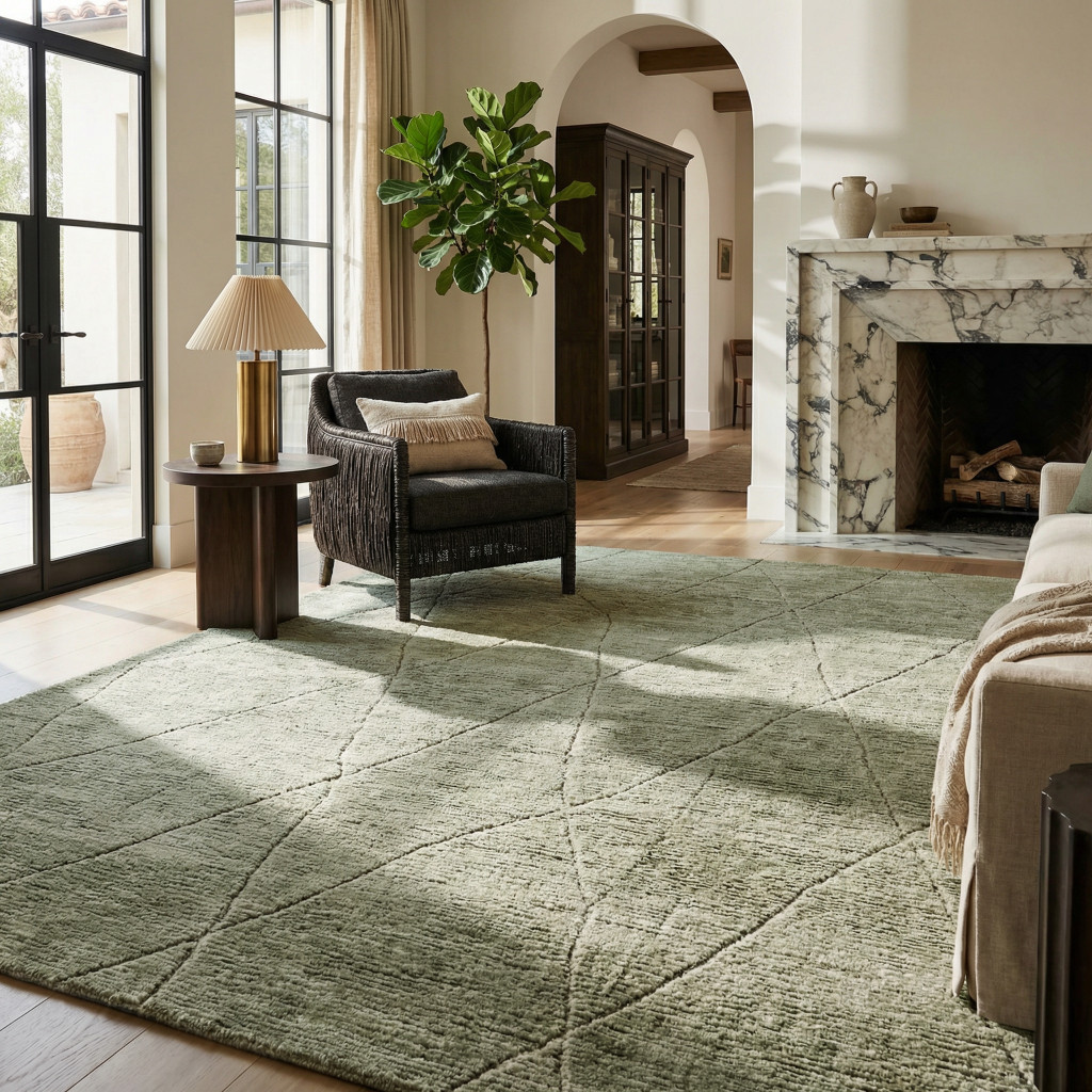 This 5-foot x 8-foot green and ivory geometric power loom distressed non skid area rug, is a great way to add warmth to a room. This rectangle shaped rug features a geometric design in green and ivory to give it visual interest. A classic shape marries with good looking design for your space ideal for spaces with kids and pets, this rug is stain resistant to help repel stains and spilled liquids. 63-inch H x 91-inch W x 0.4-inch D