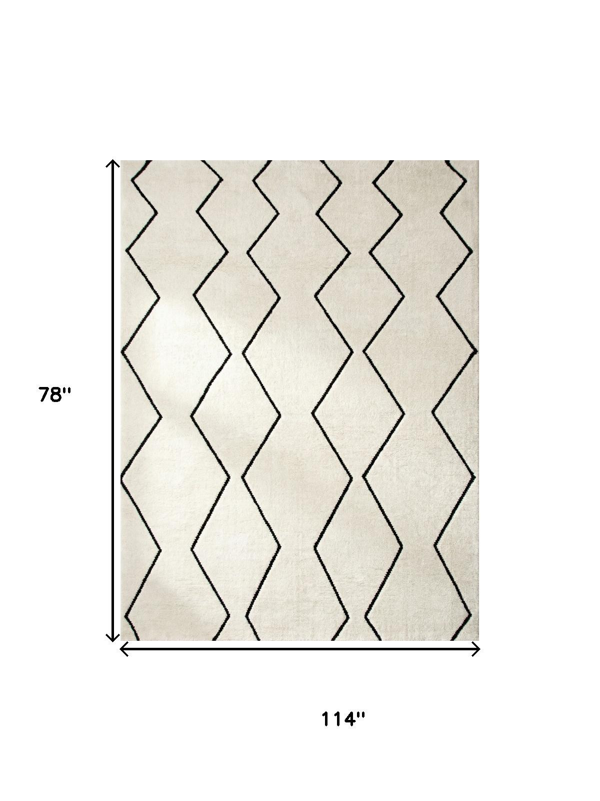 This 7-foot x 10-foot beige and black geometric power loom distressed non skid area rug, is a great way to add warmth to a room. This rectangle shaped rug features a geometric design in beige and black to give it visual interest. A classic shape marries with good looking design for your space ideal for spaces with kids and pets, this rug is stain resistant to help repel stains and spilled liquids. 78-inch H x 114-inch W x 0.4-inch D