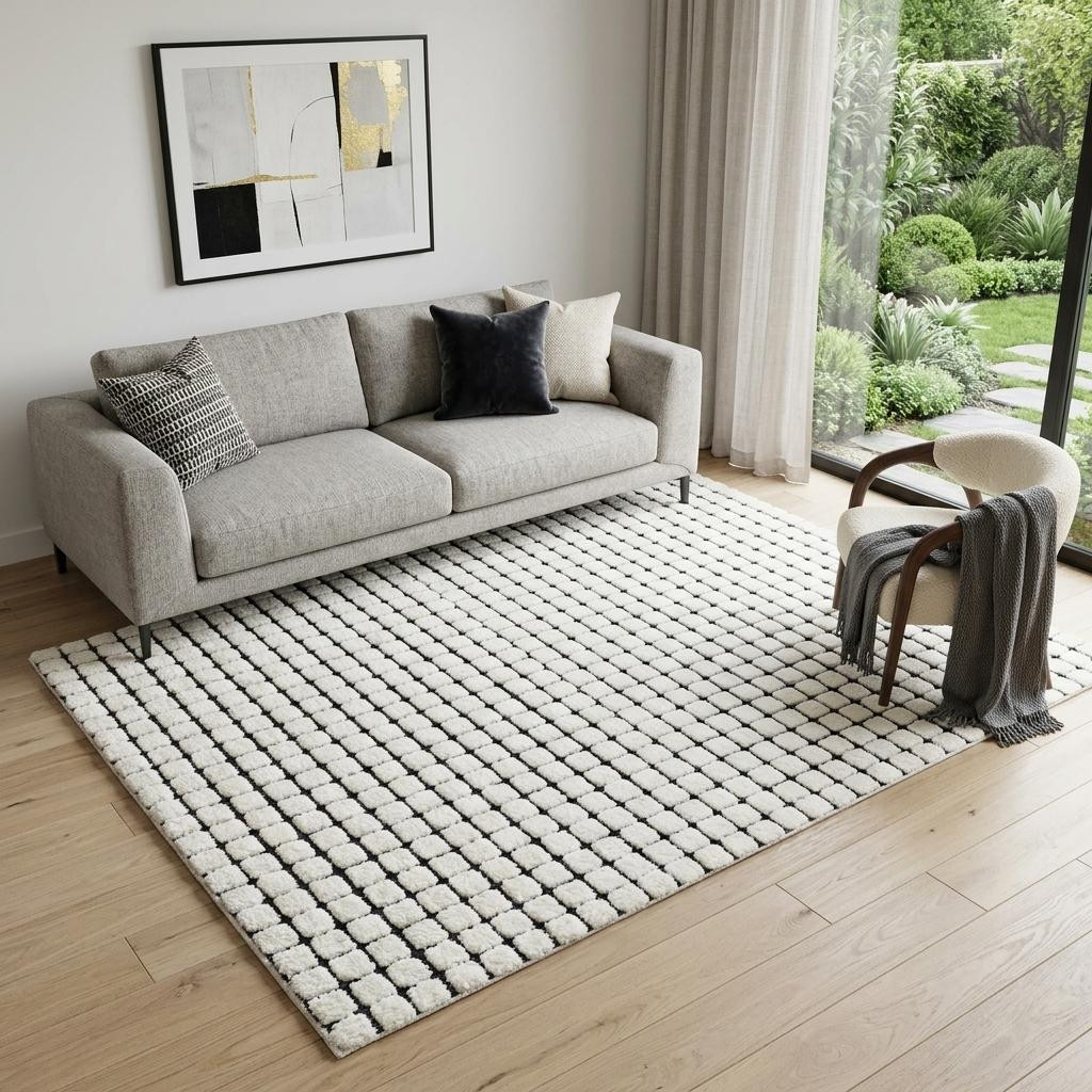 power loom distressed area rug, loom distressed area rug, distressed area rug, beige black checkered power loom, checkered power loom distressed area |