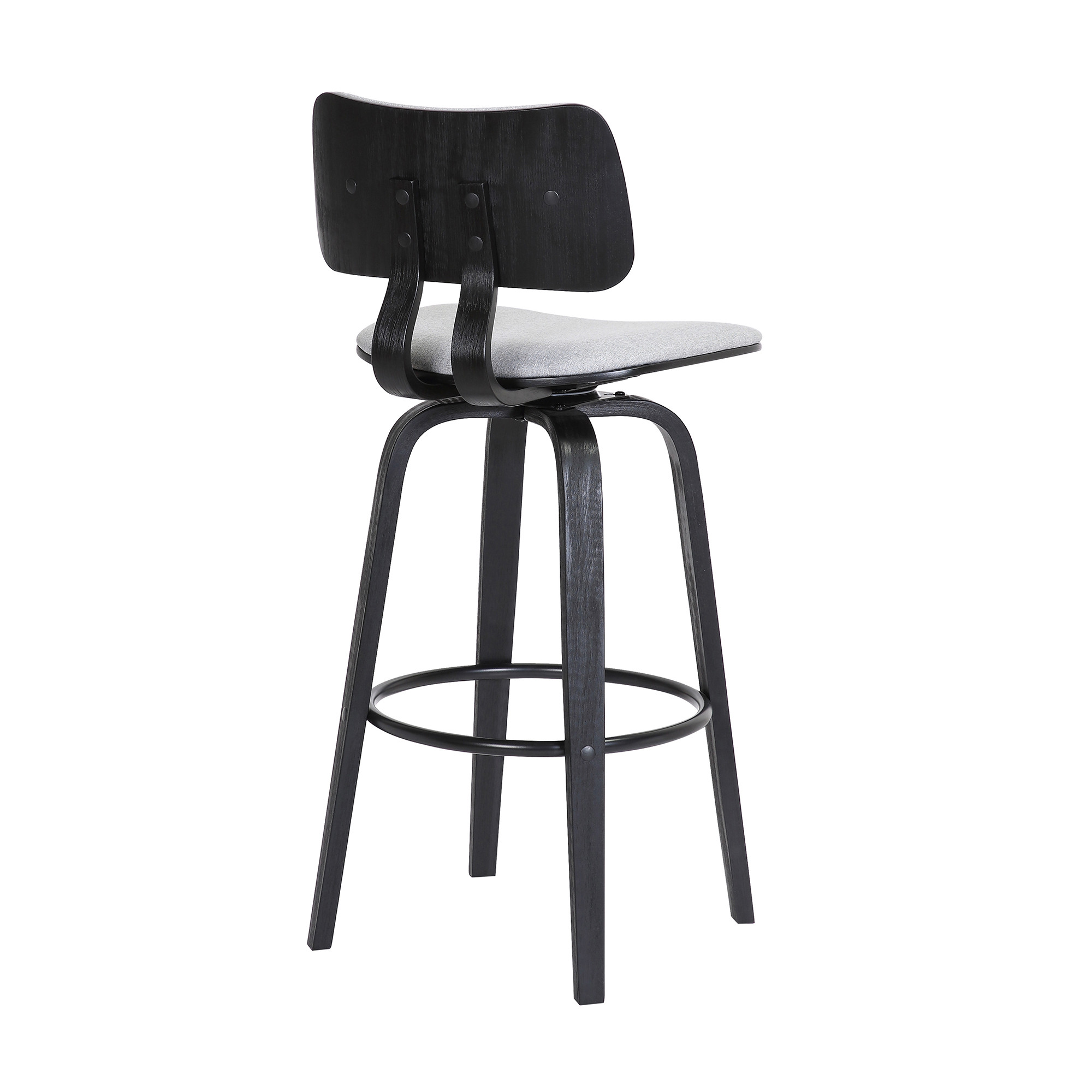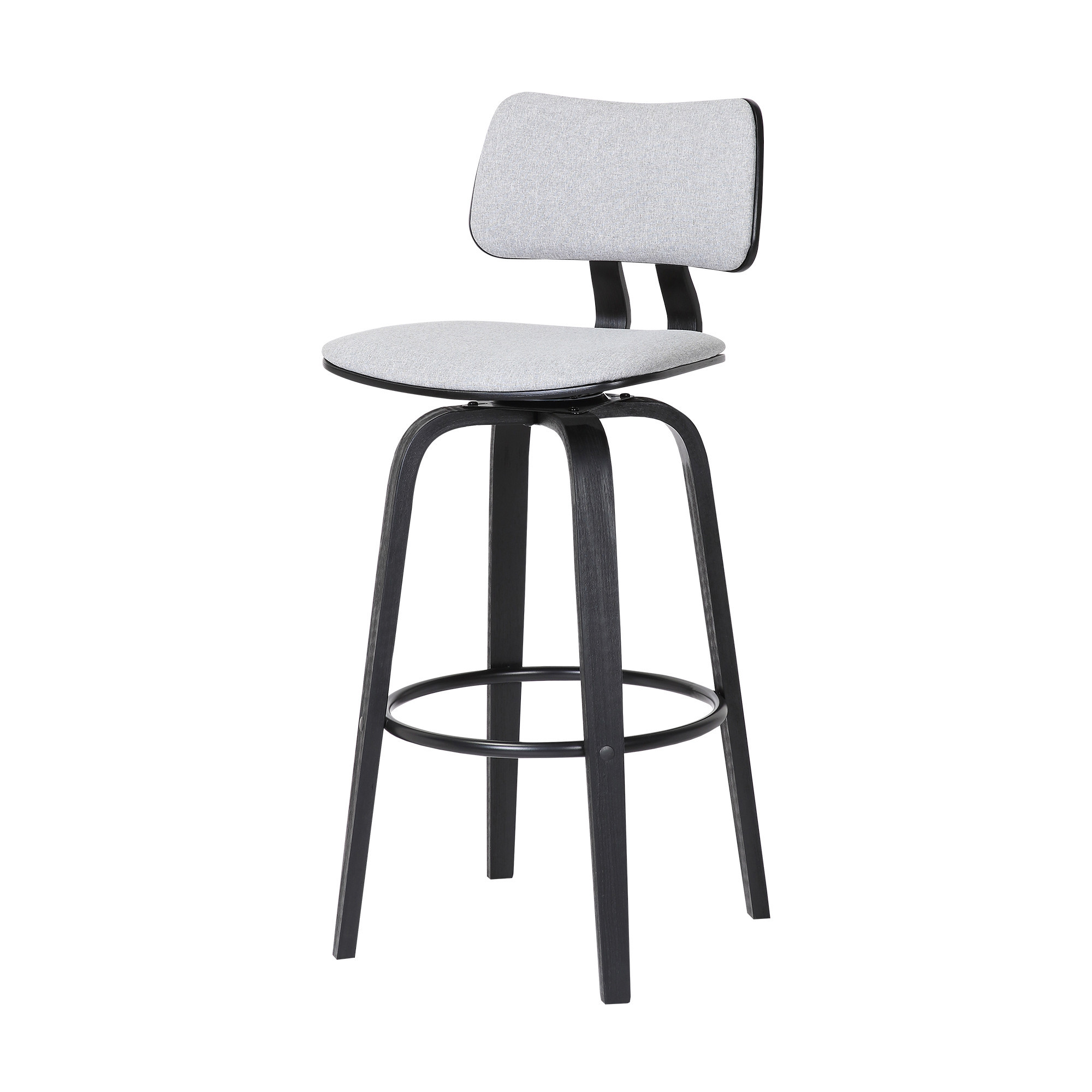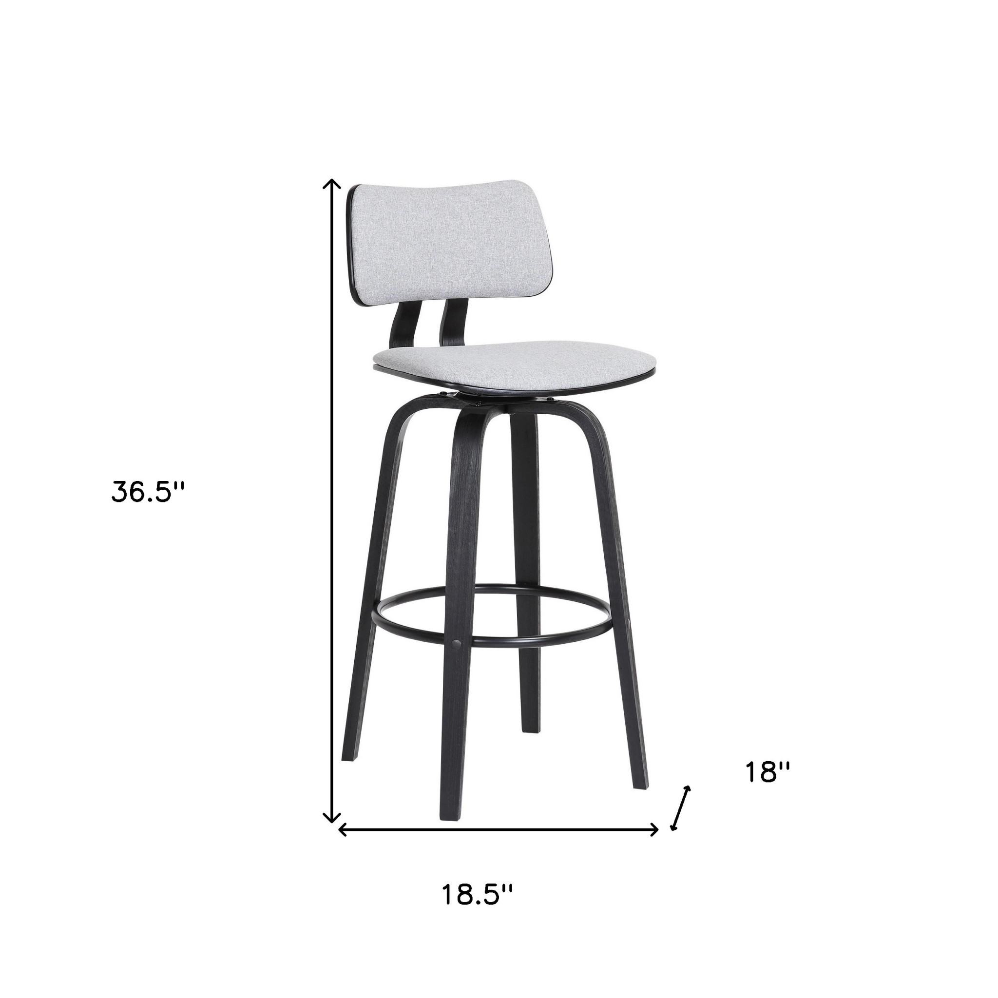 The perfect way to add some extra seating in your home, this 26-inch light gray and black fabric swivel low back counter height bar chair will elevate the look and vibe of your room. The base of this stool is made from manufactured wood in a black color that is a nice contrast to the light gray fabric seat. A low back mixed with a square shaped seat design makes this chair both comfortable and fashionable. Designed with a footrest for comfort and convenience. 36.5-inch H x 18.5-inch W x 18-inch D