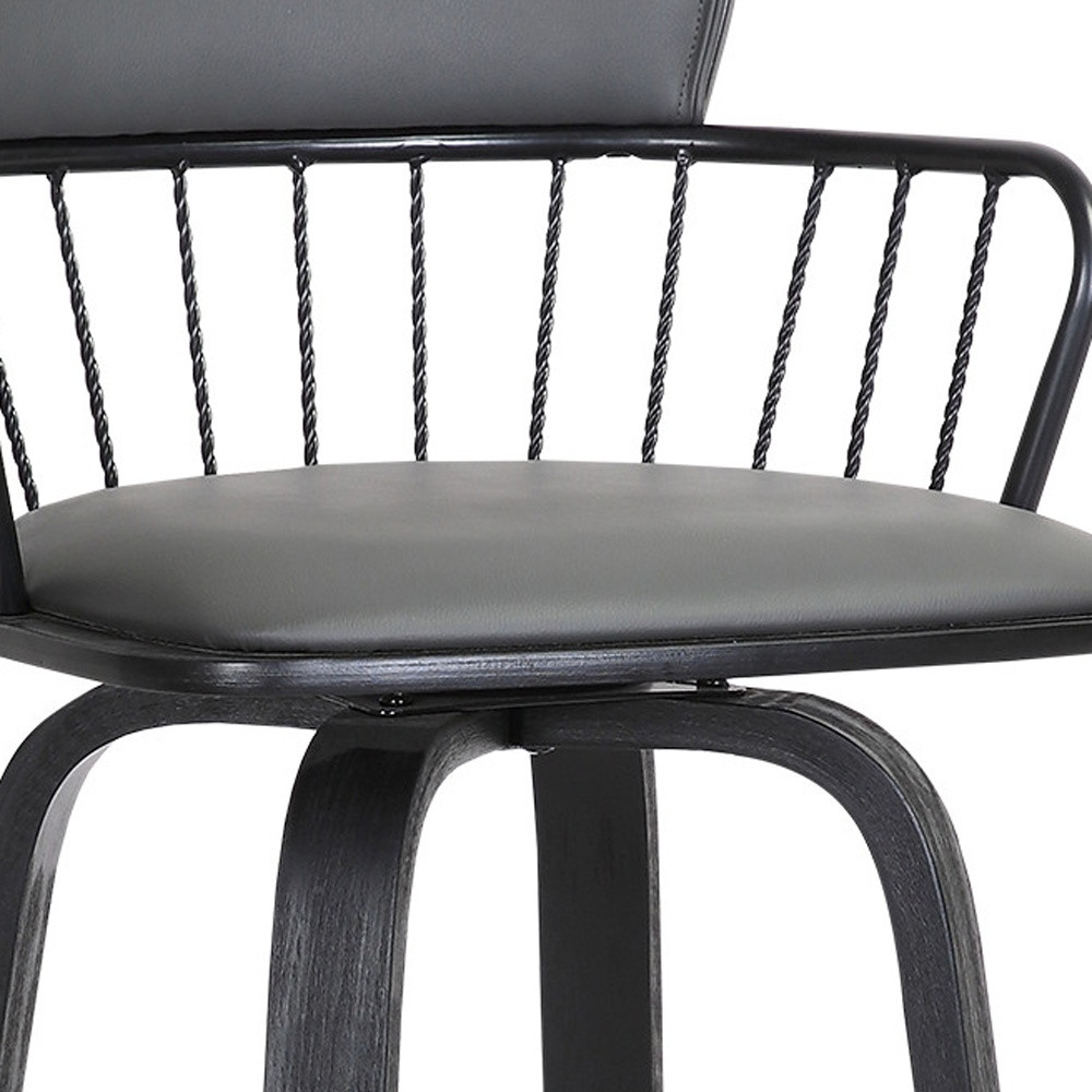 Comfort and design come together nicely in this 30-inch gray and black faux leather swivel low back bar height bar chair. Quality construction from black manufactured wood combines with gray faux leather to give this stool a fresh and updated look. A low back mixed with a square shaped seat design makes this chair both comfortable and fashionable. Designed with armrests for your comfort, this chair also features a footrest for comfort and convenience. 39.5-inch H x 19-inch W x 20-inch D