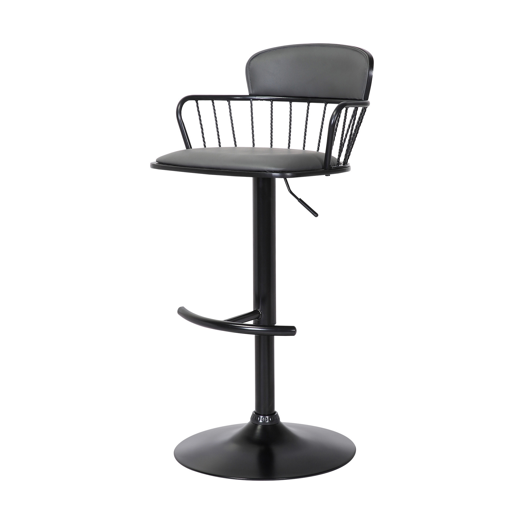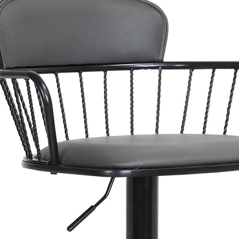 33" gray black faux leather, height bar chair, low adjustable height bar chair, black faux leather metal swivel, leather metal swivel low adjustable |