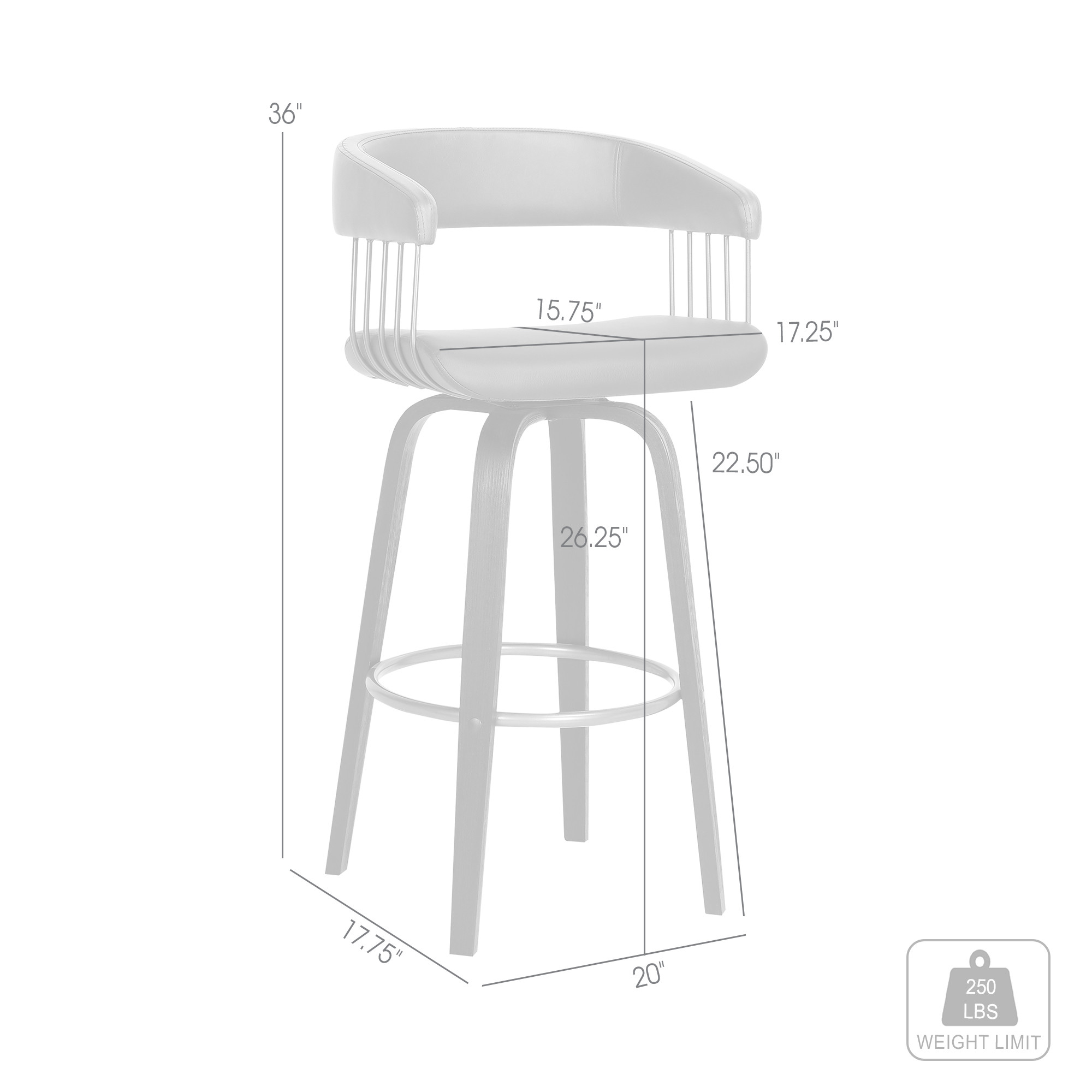 Comfortable enough to sit in for awhile, this 26-inch gray and black faux leather swivel counter height bar chair will transcend the look of your room. The black coloration of the high quality manufactured wood base marries nicely with the gray faux leather seat. Not only good looking and stylish, this chair features a bucket shaped seat and a full back for the ultimate in comfort and enjoyment. Designed with armrests for your comfort, this chair also features a footrest for comfort and convenience. 36-inch H x 18-inch W x 20-inch D