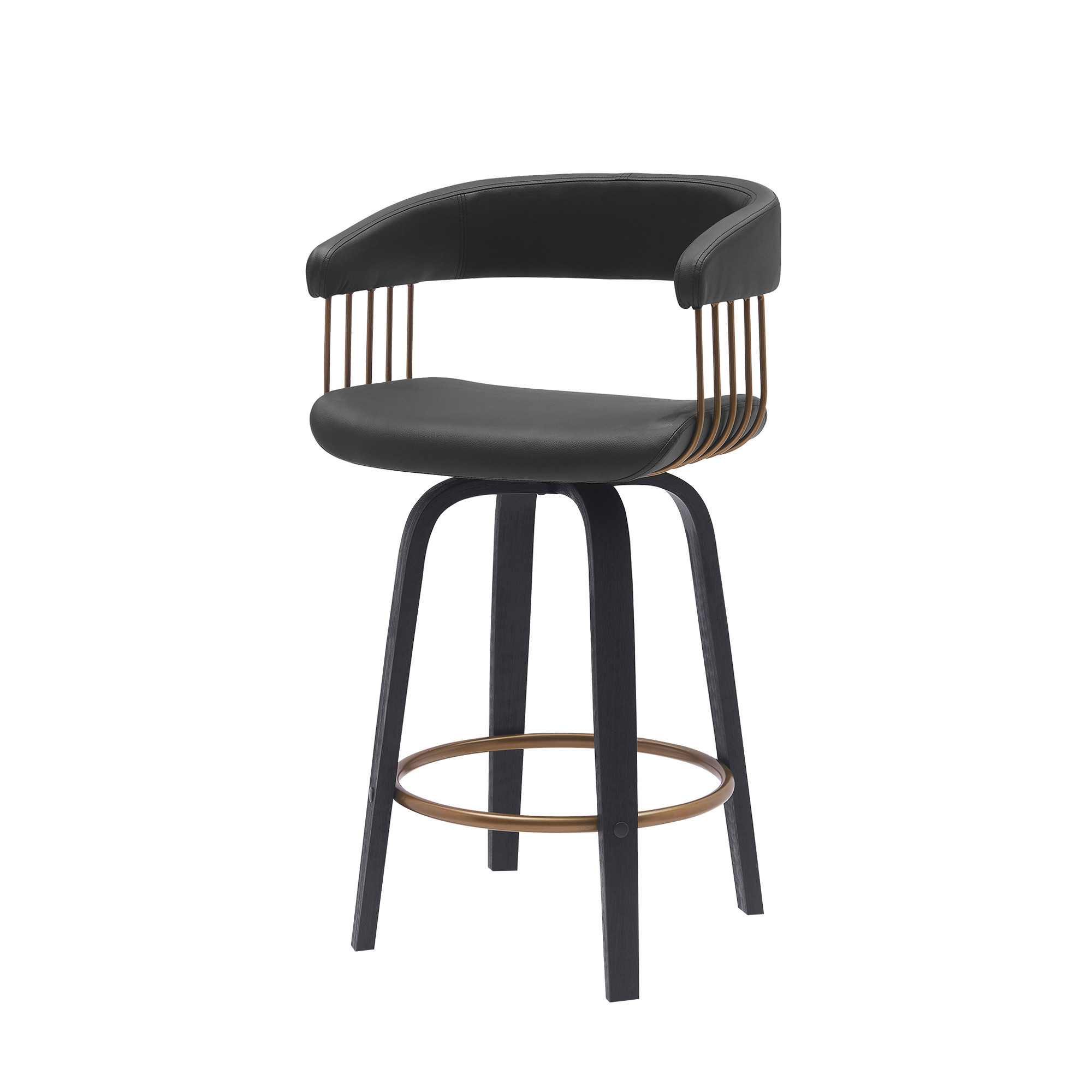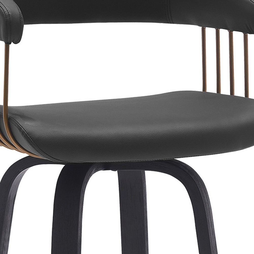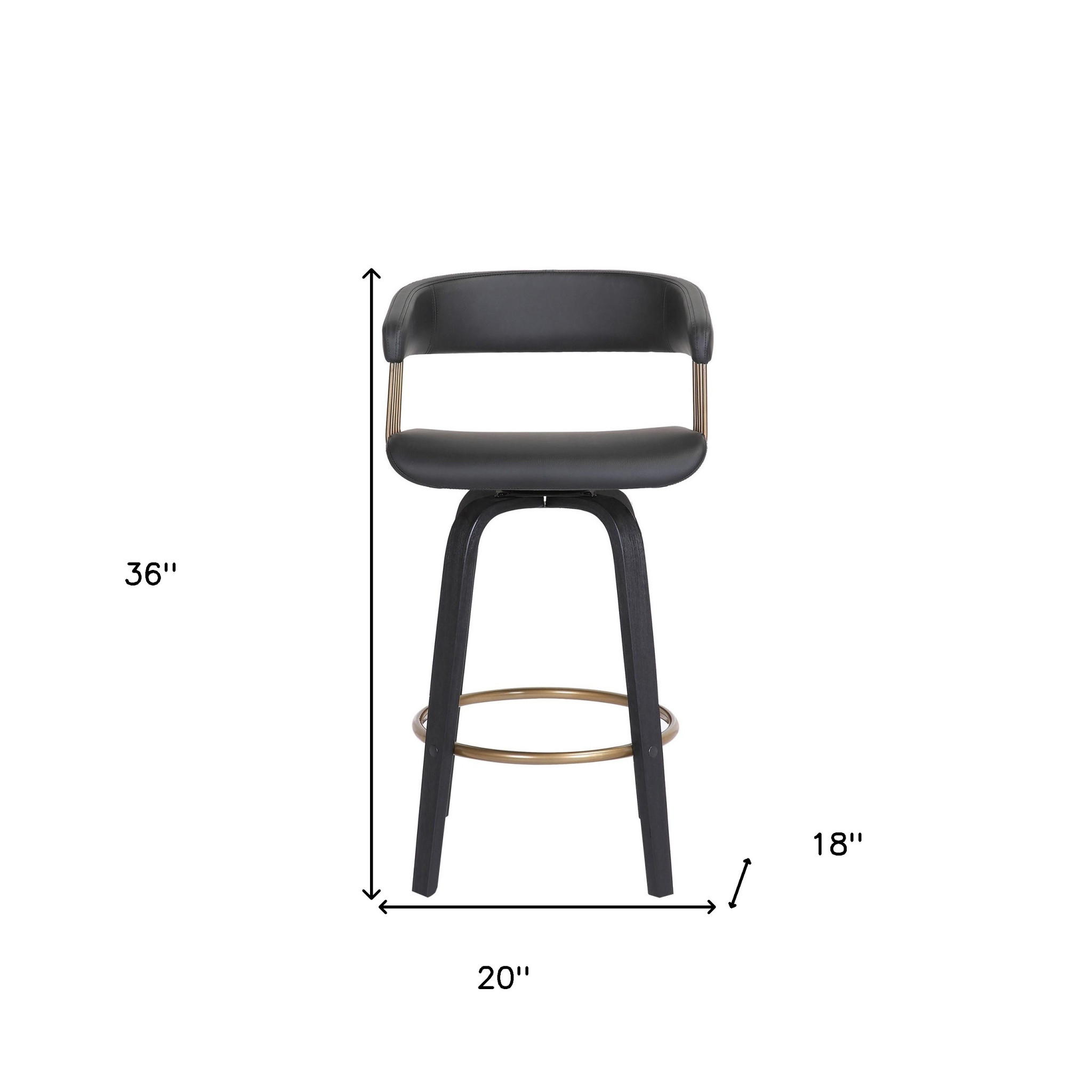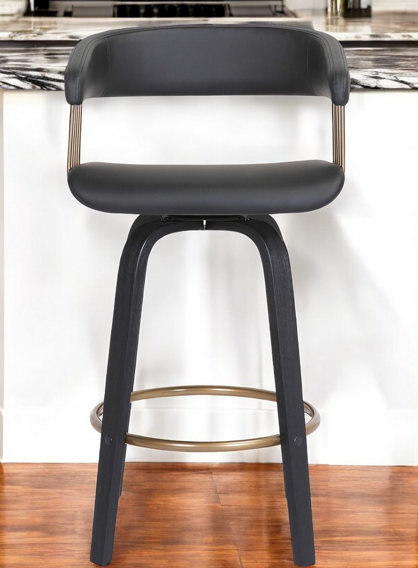 The perfect way to add some extra seating in your home, this 26-inch black faux leather swivel counter height bar chair will elevate the look and vibe of your room. The black coloration runs throughout this good looking manufactured wood and faux leather stool. Not only good looking and stylish, this chair features a bucket shaped seat and a full back for the ultimate in comfort and enjoyment. Designed with armrests for your comfort, this chair also features a footrest for comfort and convenience. 36-inch H x 18-inch W x 20-inch D