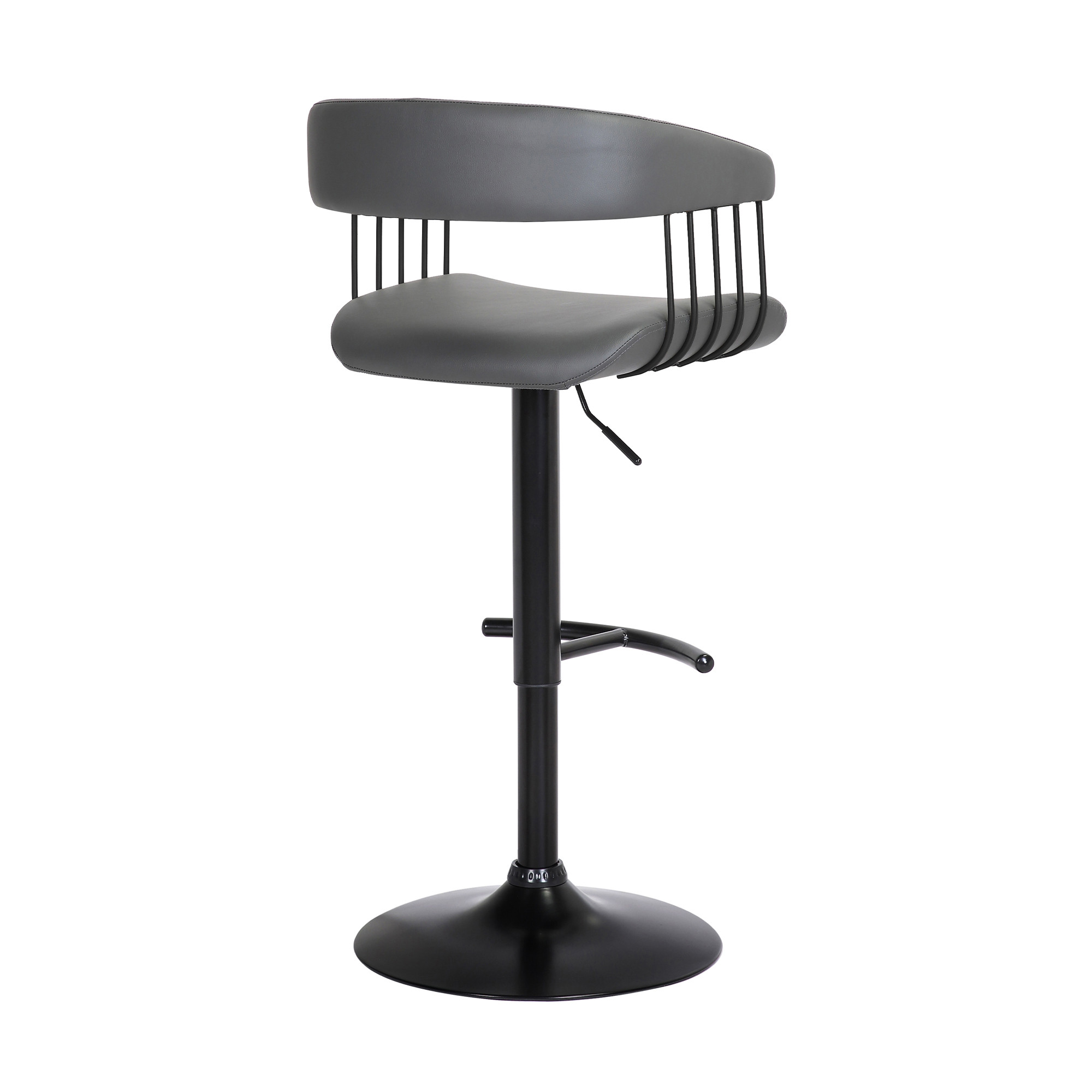 height bar chair, adjustable height bar chair, swivel adjustable height bar chair, 33" gray black faux leather, leather metal swivel adjustable height |