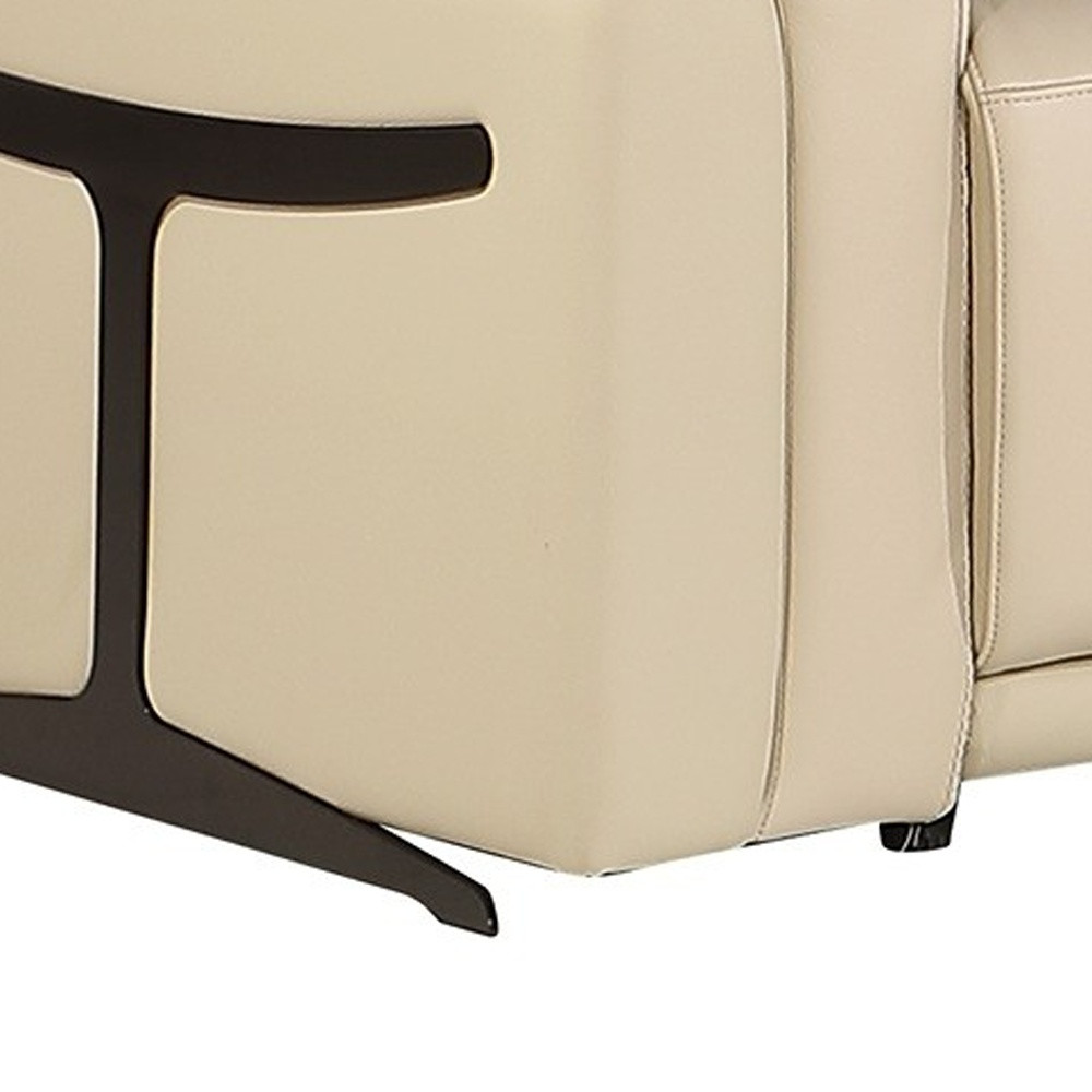 An interior designer's dream, this buttery soft high-grade leather beige italian leather modular l shaped seven piece corner sectional with console will bring just the right touch to your space. The premium leather used makes your lounging luxuriously comfortable and adds an elegant appeal to your space. Solid colors give you lots of decorative options and are easy to work into your decor scheme. Flared_arms offer a comfy place to rest. For the ultimate in relaxation, this sectional includes power - push button recline that turns it into a comfy lounge for sleeping or resting. Add versatility to your room as this sectional opens up into a n/a sleeper bed. Silver metal legs effortlessly elevate the room and add a touch of contemporary design. A great showpiece for your room, this sectional is a must have. 39-inch h x 138-inch w x 123-inch d.