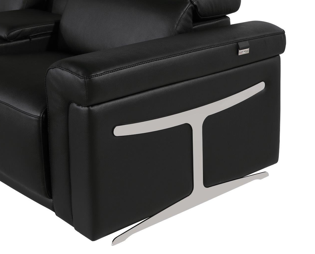 An interior designer's dream, this buttery soft high-grade leather black italian leather modular curved seven piece corner sectional with console will bring just the right touch to your space. The premium leather used makes your lounging luxuriously comfortable and adds an elegant appeal to your space. Solid colors give you lots of decorative options and are easy to work into your decor scheme. Flared_arms offer a comfy place to rest. For the ultimate in relaxation, this sectional includes power - push button recline that turns it into a comfy lounge for sleeping or resting. Add sleeping options to your space as this fabulous sectional opens to a n/a sleeper. Silver metal legs effortlessly elevate the room and add a touch of contemporary design. Ideal for placing in the middle of a room, this curved showstopper is an unconventional way to seat multiple people in a stylish and elegant manor. Great for everyday lounging and for entertaining, sectionals are an ideal way to seat multiple people. 39-inch h x 138-inch w x 123-inch d.