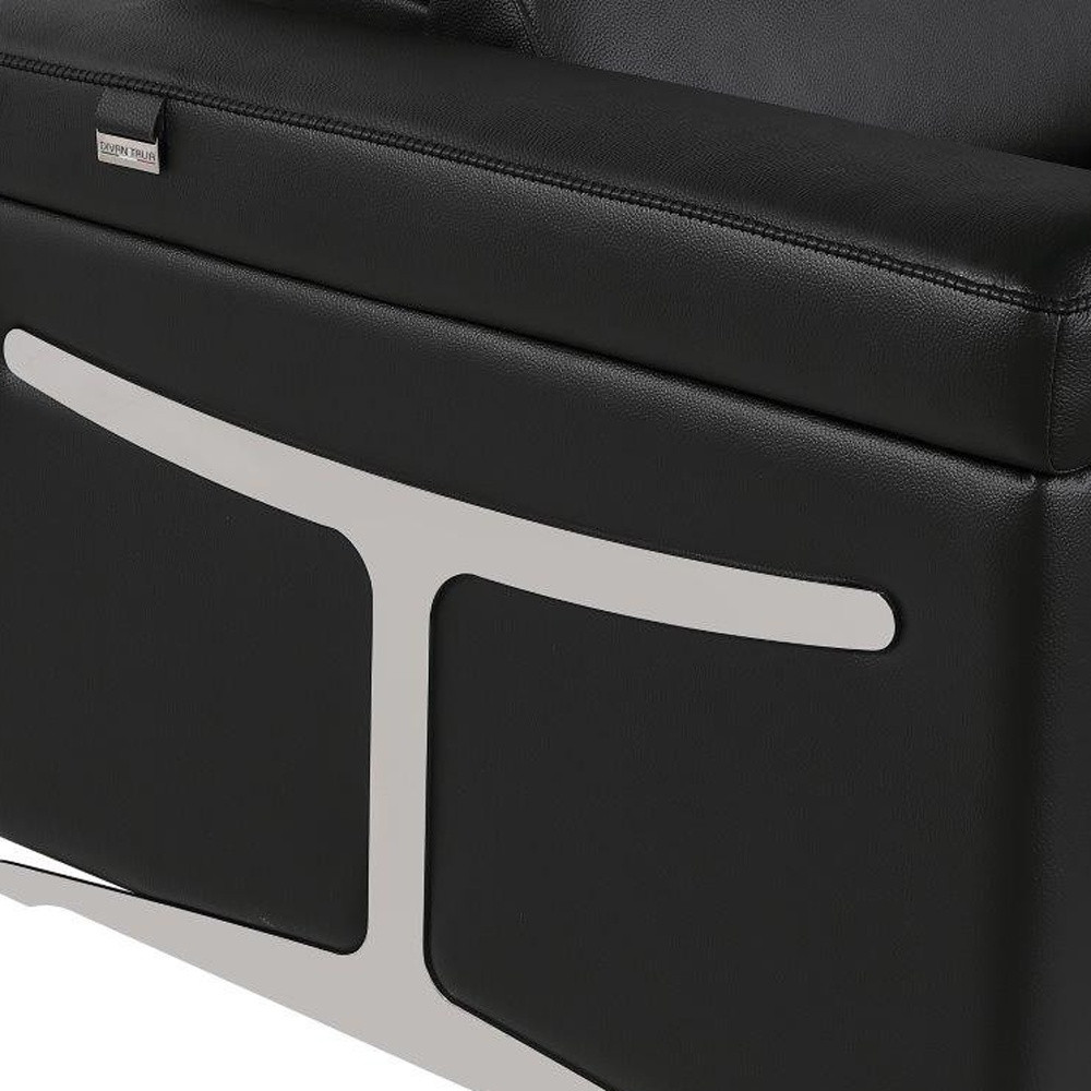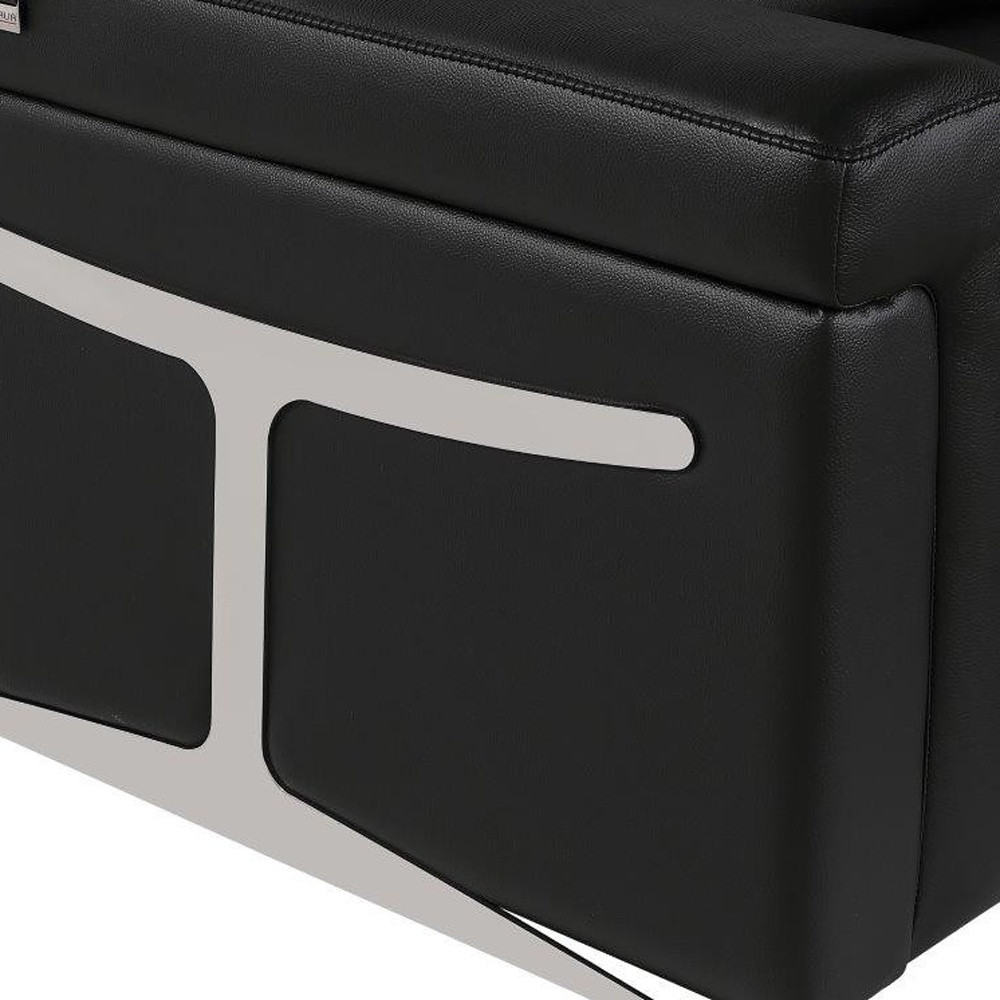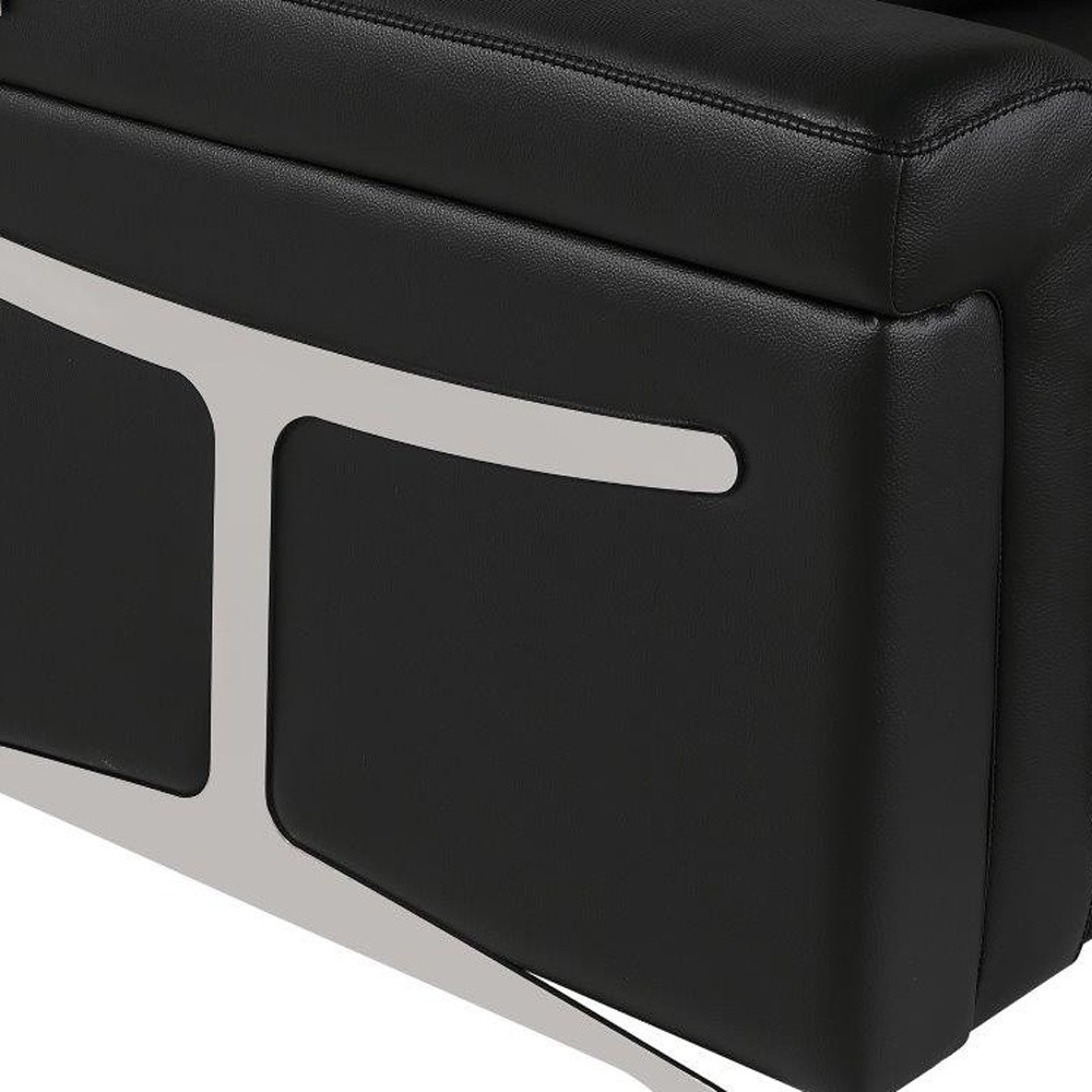 The black italian leather modular curved eight piece corner sectional with console is spacious design meticulously crafted with extraordinary cushion comfort and ultimate durability so everyone in your home can have the best seat in the house. The high-end premium leather used makes your lounging luxuriously comfortable and adds an elegant appeal to your space. Solid colors give you lots of decorative options and are easy to work into your decor scheme. Flared_arms offer a comfy place to rest. Power - push button recline allows you to truly rest, lounge and even sleep comfortably. Add sleeping options to your space as this fabulous sectional opens to a n/a sleeper. Silver metal legs effortlessly elevate the room and add a touch of contemporary design. Ideal for placing in the middle of a room, this curved showstopper is an unconventional way to seat multiple people in a stylish and elegant manor. A great showpiece for your room, this sectional is a must have. 39-inch h x 151-inch w x 123-inch d.