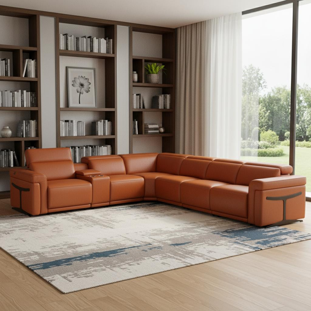Modern Top Grain Italian Leather Upholstered sectinal with 4 power reclining seats