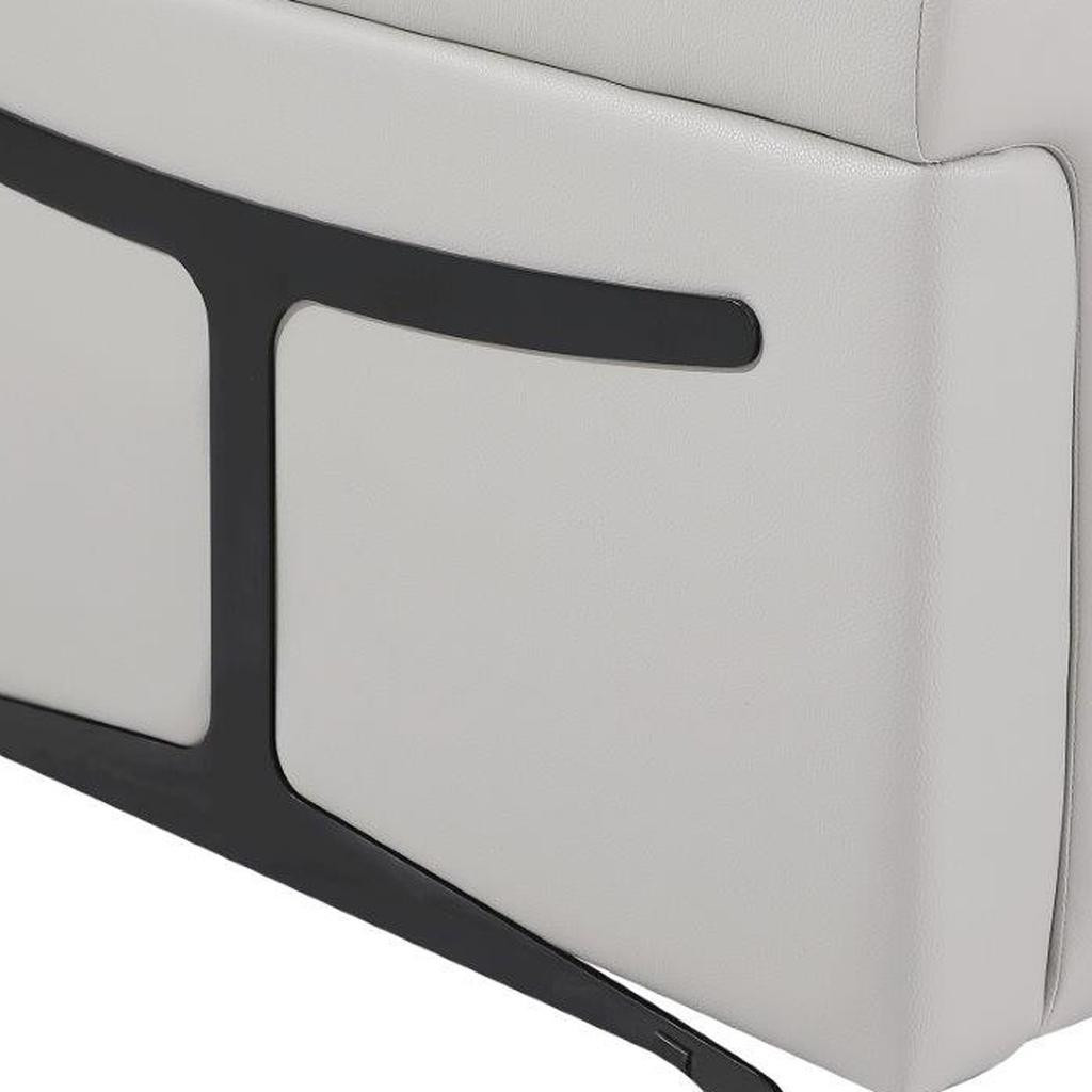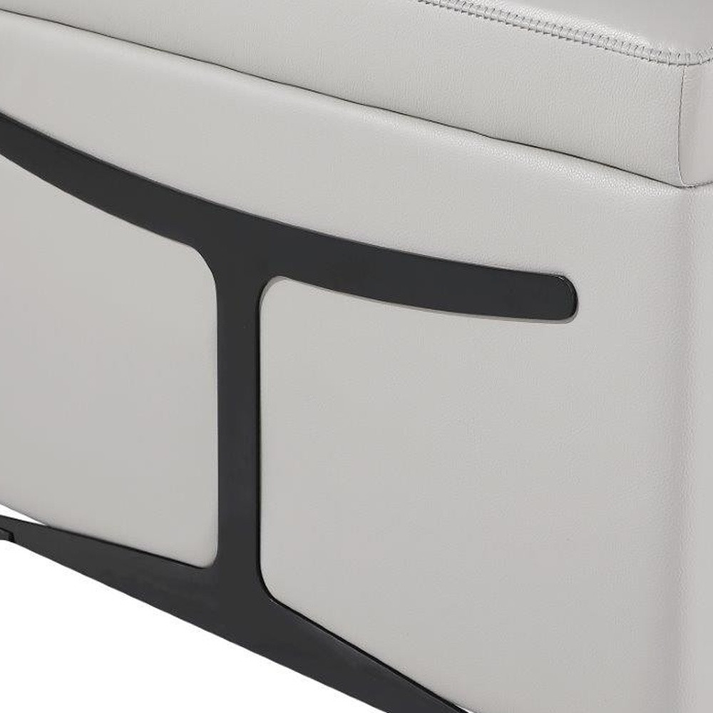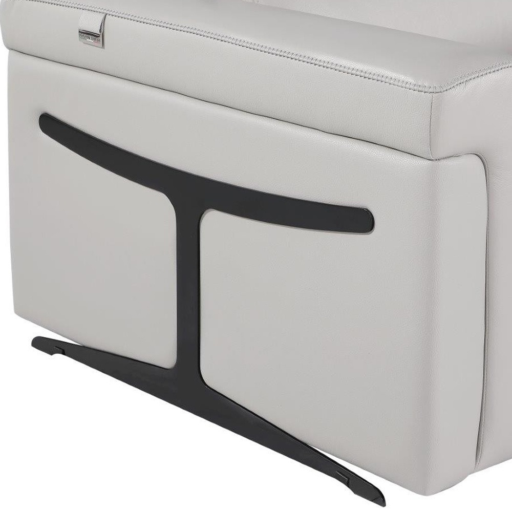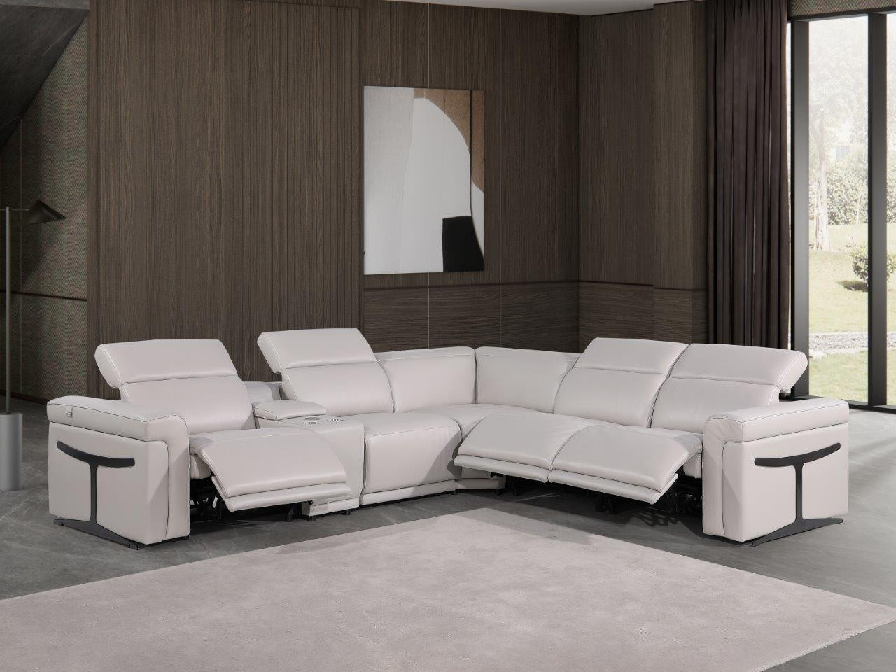 An interior designer's dream, this buttery soft high-grade leather light gray italian leather modular curved six piece corner sectional with console will bring just the right touch to your space. The premium leather used makes your lounging luxuriously comfortable and adds an elegant appeal to your space. Solid colors give you lots of decorative options and are easy to work into your decor scheme. Flared_arms offer a comfy place to rest. Power - push button recline allows you to truly rest, lounge and even sleep comfortably. Add sleeping options to your space as this fabulous sectional opens to a n/a sleeper. Silver metal legs effortlessly elevate the room and add a touch of contemporary design. Ideal for placing in the middle of a room, this curved showstopper is an unconventional way to seat multiple people in a stylish and elegant manor. A great showpiece for your room, this sectional is a must have. 39-inch h x 110-inch w x 123-inch d.
