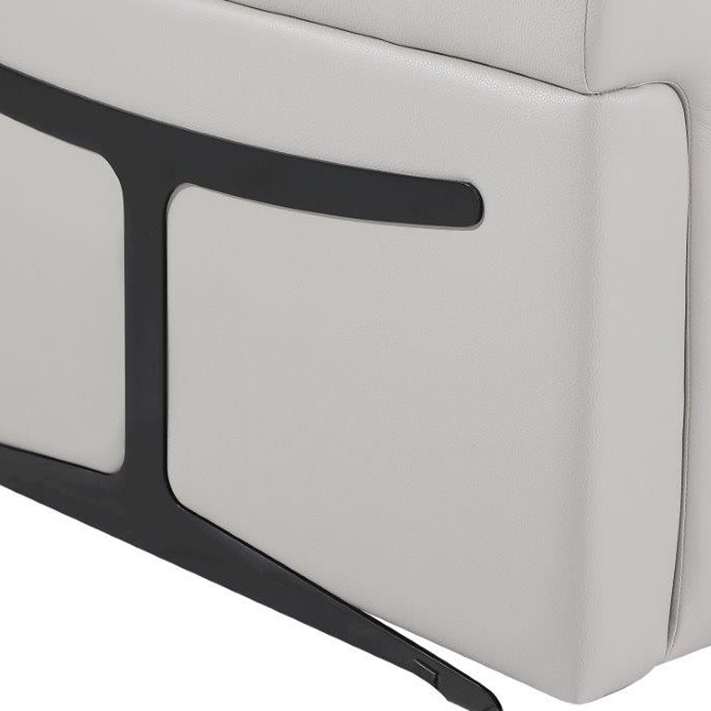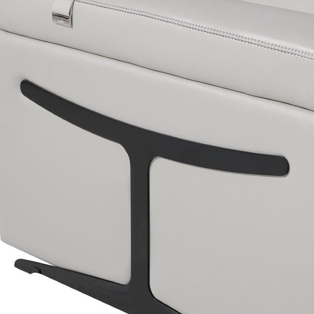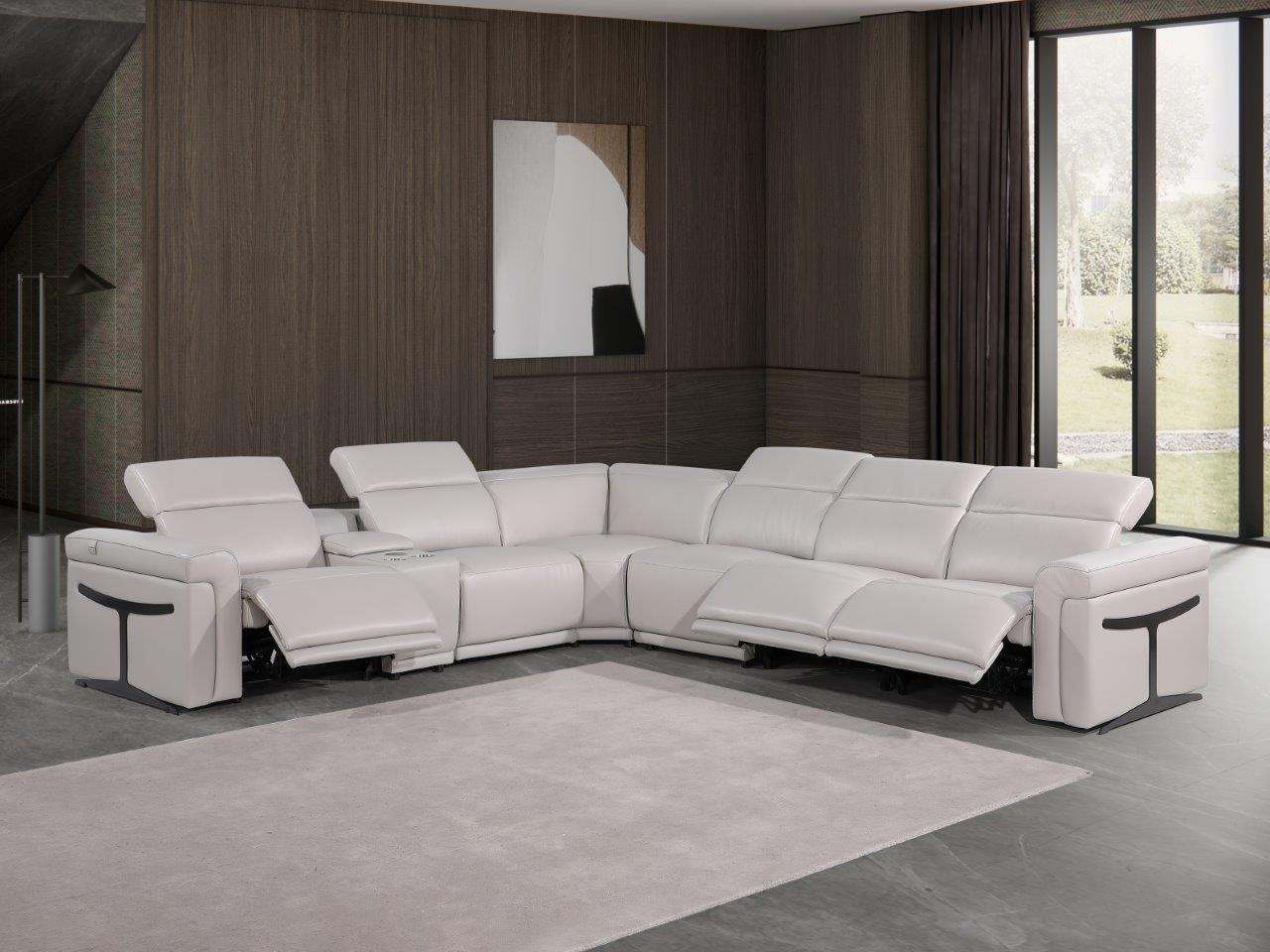 Superior construction from fabulously soft and high-grade leather gives this light gray italian leather modular curved seven piece corner sectional with console a leg up on the competition. The premium leather used makes your lounging luxuriously comfortable and adds an elegant appeal to your space. Solid colors give you lots of decorative options and are easy to work into your decor scheme. Flared_arms offer a comfy place to rest. Power - push button recline allows you to truly rest, lounge and even sleep comfortably. Add versatility to your room as this sectional opens up into a n/a sleeper bed. Silver metal legs effortlessly elevate the room and add a touch of contemporary design. Curved sectionals are a great way to maximize seating space without someone getting stuck in the uncomfortable corner seat. Great for everyday lounging and for entertaining, sectionals are an ideal way to seat multiple people. 39-inch h x 138-inch w x 123-inch d.