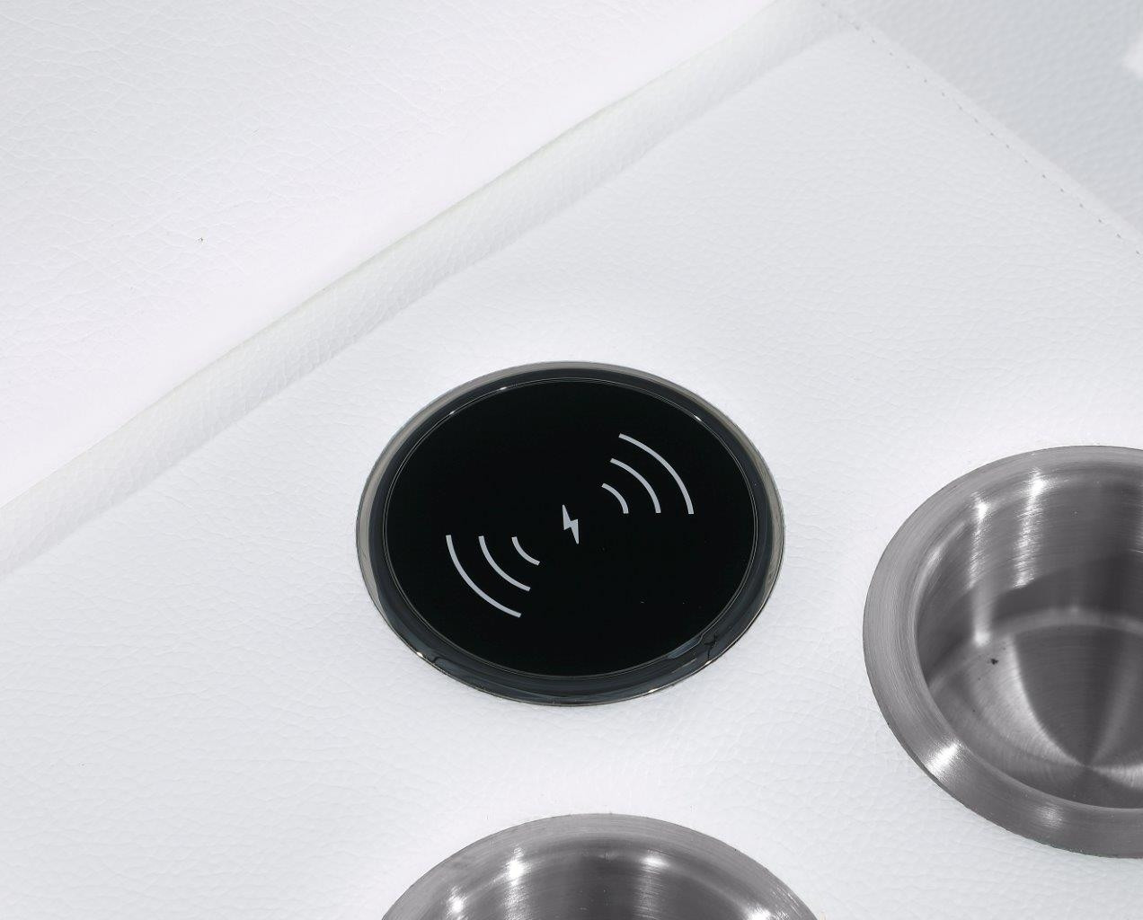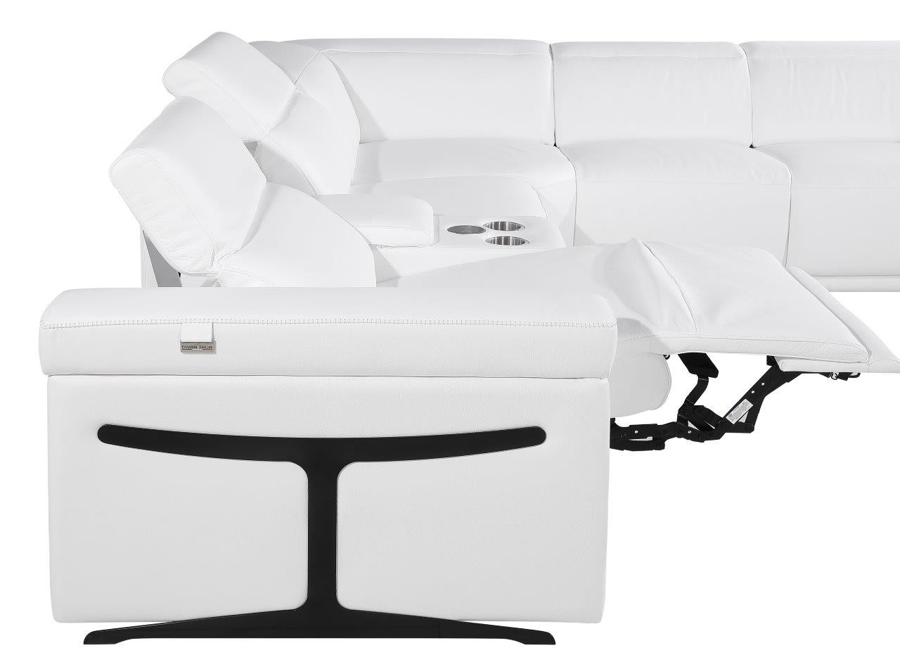 The white italian leather modular l shaped eight piece corner sectional with console is spacious design meticulously crafted with extraordinary cushion comfort and ultimate durability so everyone in your home can have the best seat in the house. The high-end premium leather used makes your lounging luxuriously comfortable and adds an elegant appeal to your space. Solid colors give you lots of decorative options and are easy to work into your decor scheme. Flared_arms offer a comfy place to rest. Power - push button recline allows you to truly rest, lounge and even sleep comfortably. Add versatility to your room as this sectional opens up into a n/a sleeper bed. Silver metal legs effortlessly elevate the room and add a touch of contemporary design. Great for everyday lounging and for entertaining, sectionals are an ideal way to seat multiple people. 39-inch h x 151-inch w x 123-inch d.