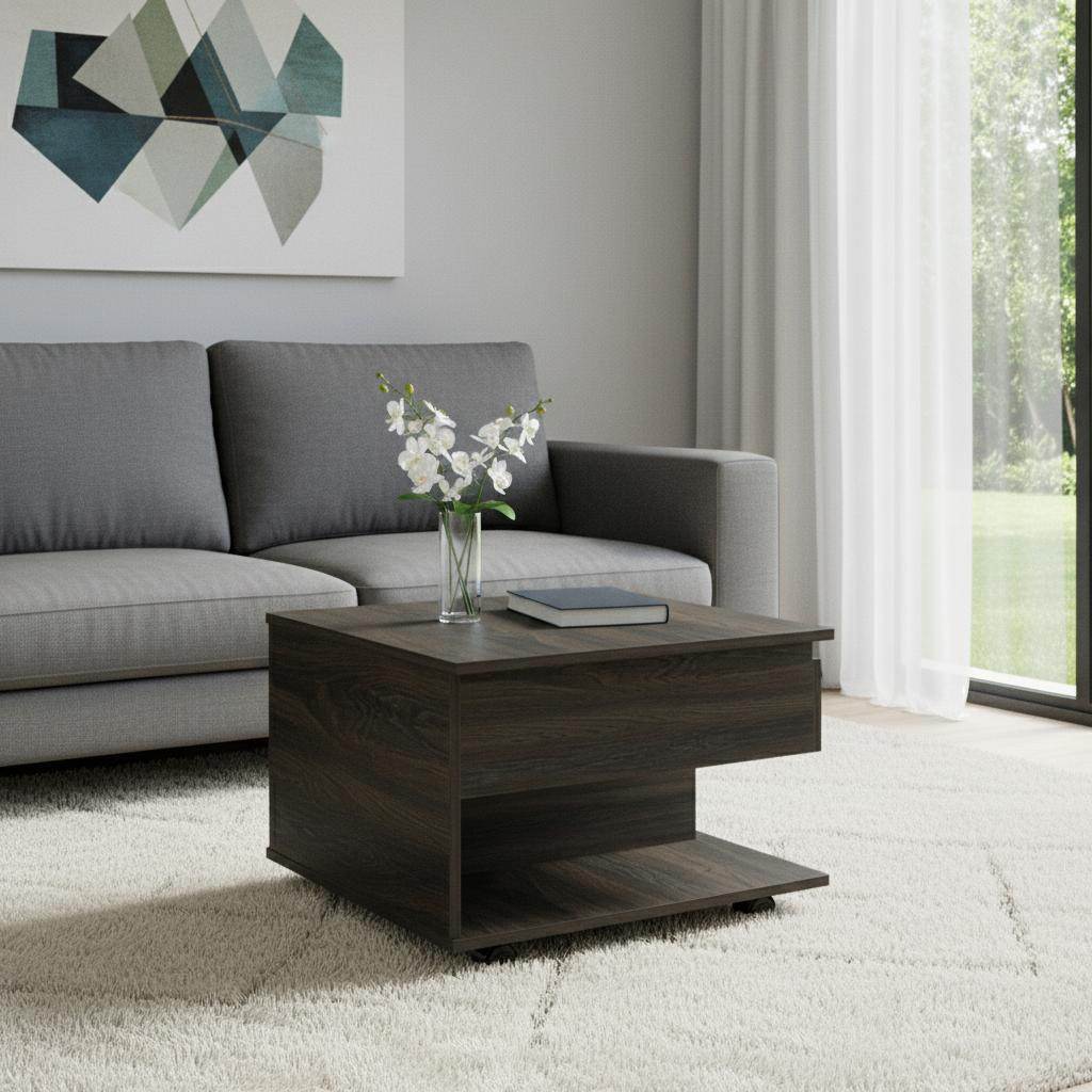 Make a statement with the 22-inch espresso wood lift top wheel coffee table and infuse a dash of character and personality into your space. This table features quality construction from manufactured wood and an updated monotone color scheme with espresso as the main color on both the top and the base. Includes a single shelf for handy storage or display space. This rectangular table is an classic yet updated way to accent your room. Wheels give the table added versatility and mobility if needed. It has an attractive design that will definitely breathe some fresh air into your interior. 15.30-inch h x 21.60-inch w x 19.60-inch d.
