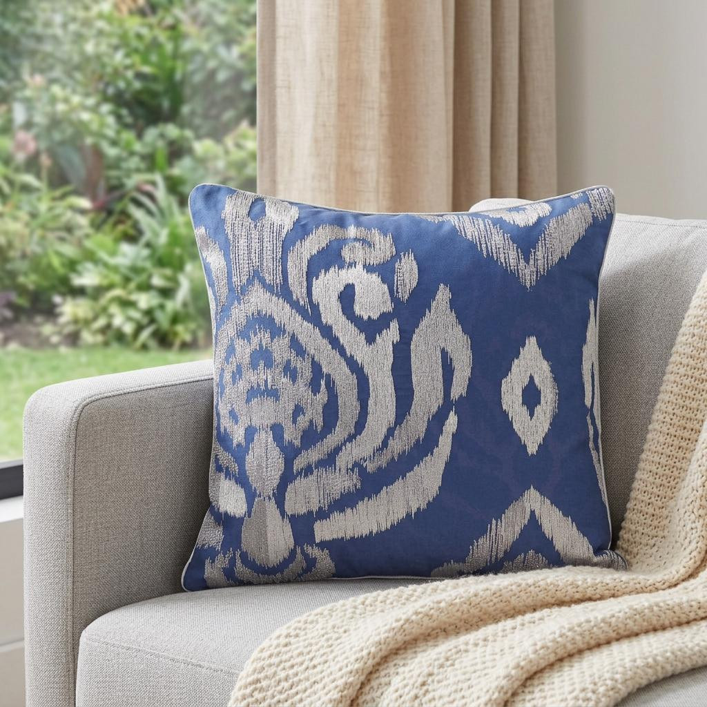 This 20-inch x 20-inch blue geometric polyester zippered pillow with beads will add a beautiful decorative accent to your decor. This soft and durable decorative pillow is expertly made of high grade, long lasting polyester in a blue coloration. Super soft and built to hold its shape, this polyfill pillow is a great option. For anyone that loves to decorate or accent their space with color and texture. Decorative pillows are a great way to change up the look and feel of your space easily and quickly. 20-inch H x 20-inch W x 4-inch D