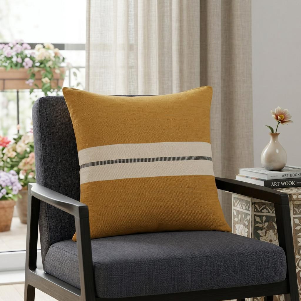 Bring a bit of fashion and zip to your space with this eye-catching and comfy 20-inch x 20-inch yellow striped cotton zippered pillow. The yellow coloring of the soft and long lasting 100% cotton will add dimension and texture to your space. Super soft and built to hold its shape, this polyfill pillow is a great option. Great to use on its own or mix with other decorations for the perfect look. A great decorative accessory for your favorite chair, to accent your sofa, or to use as part of your bed ensemble. 20-inch H x 20-inch W x 4-inch D