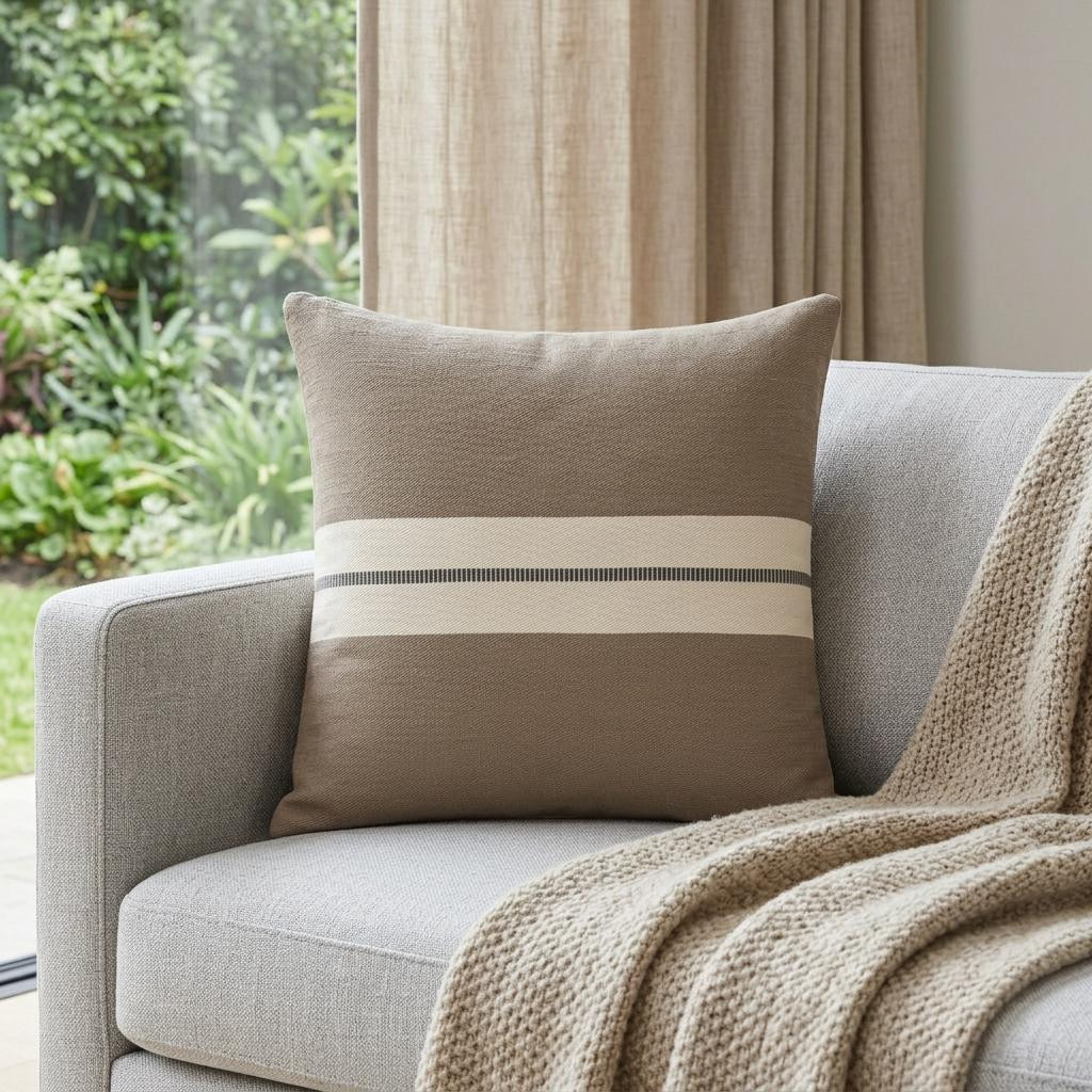cotton striped throw pillow, gray cotton striped throw pillow, striped throw pillow, 24" taupe dark gray cotton, dark gray cotton striped throw |