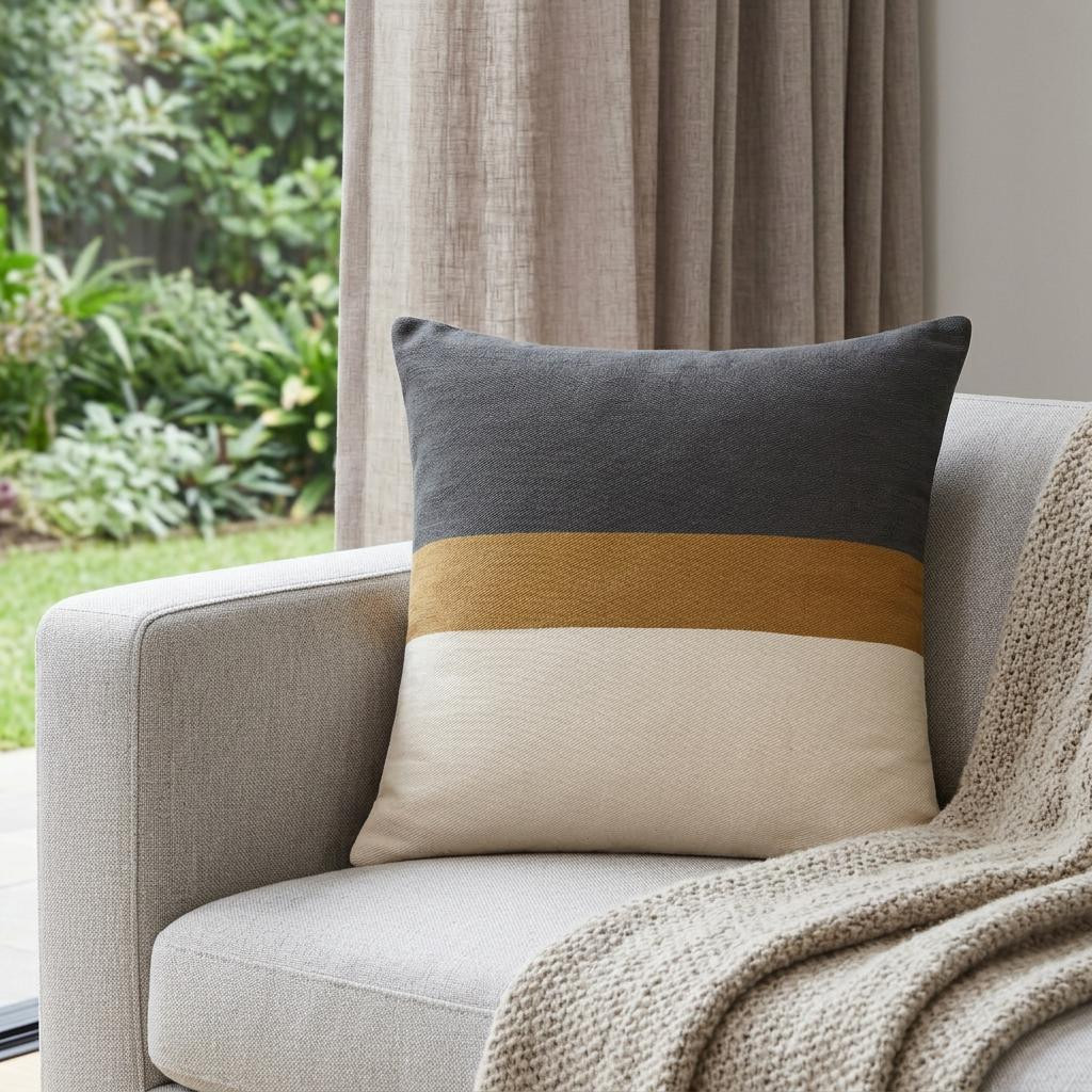 Unique and decorative, this comfortable 24-inch dark gray brown and off white cotton striped throw pillow will leave a lasting impression. This soft and durable decorative pillow is expertly made of high grade, long lasting cotton in a dark gray, brown, and off white coloration. This soft polyfill filled pillow not only is decorative but made to be comfy and cozy all day long. Decorative pillows are a great way to change up the look and feel of your space easily and quickly. Decorative throw pillows not only add color and dimension to your space but can be comfy and supportive when you are lounging and cuddling as well. 24-inch h x 24-inch w x 4-inch d.