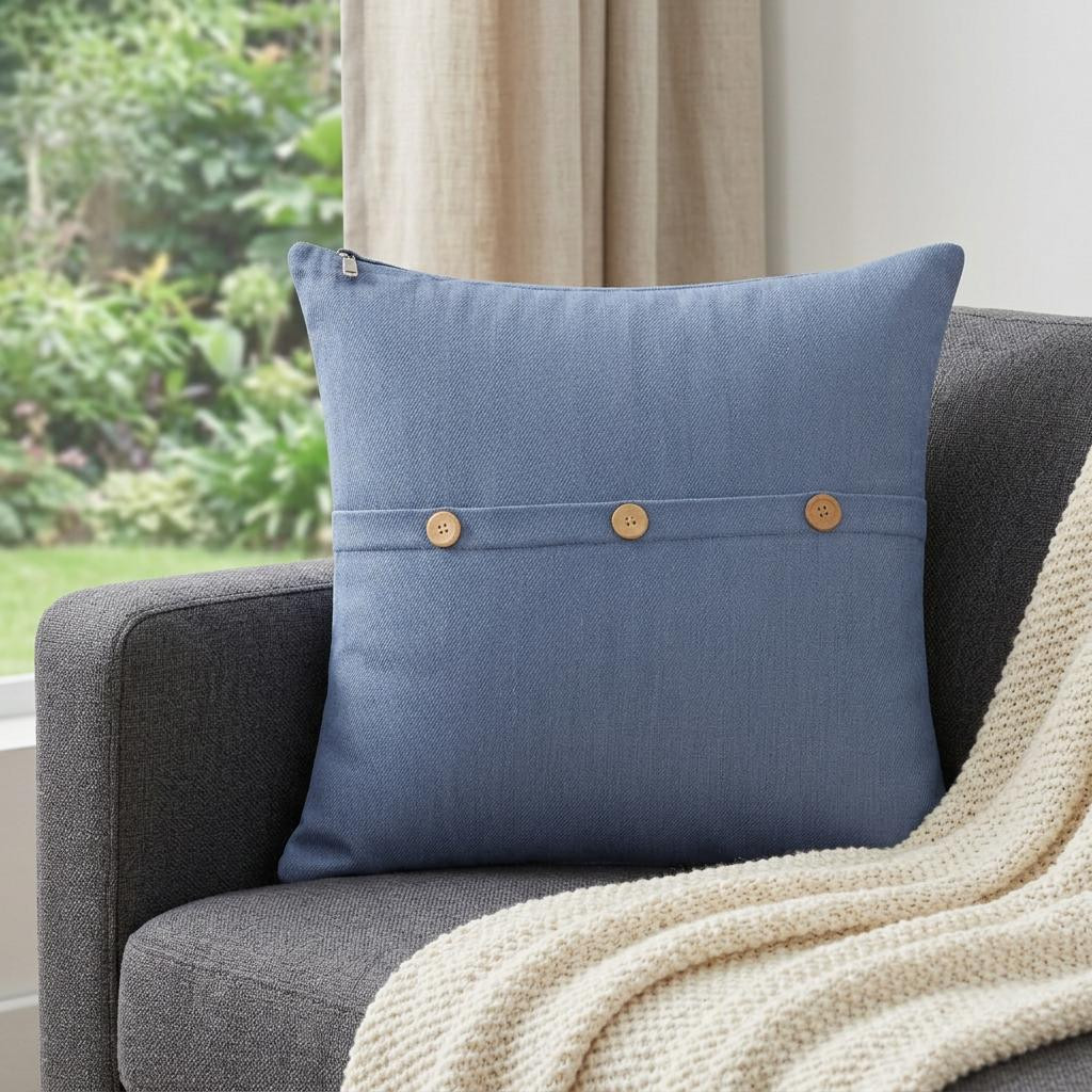 blue cotton pillow buttons edges, 20" blue cotton pillow buttons, cotton pillow buttons edges, blue cotton pillow buttons, cotton pillow buttons |