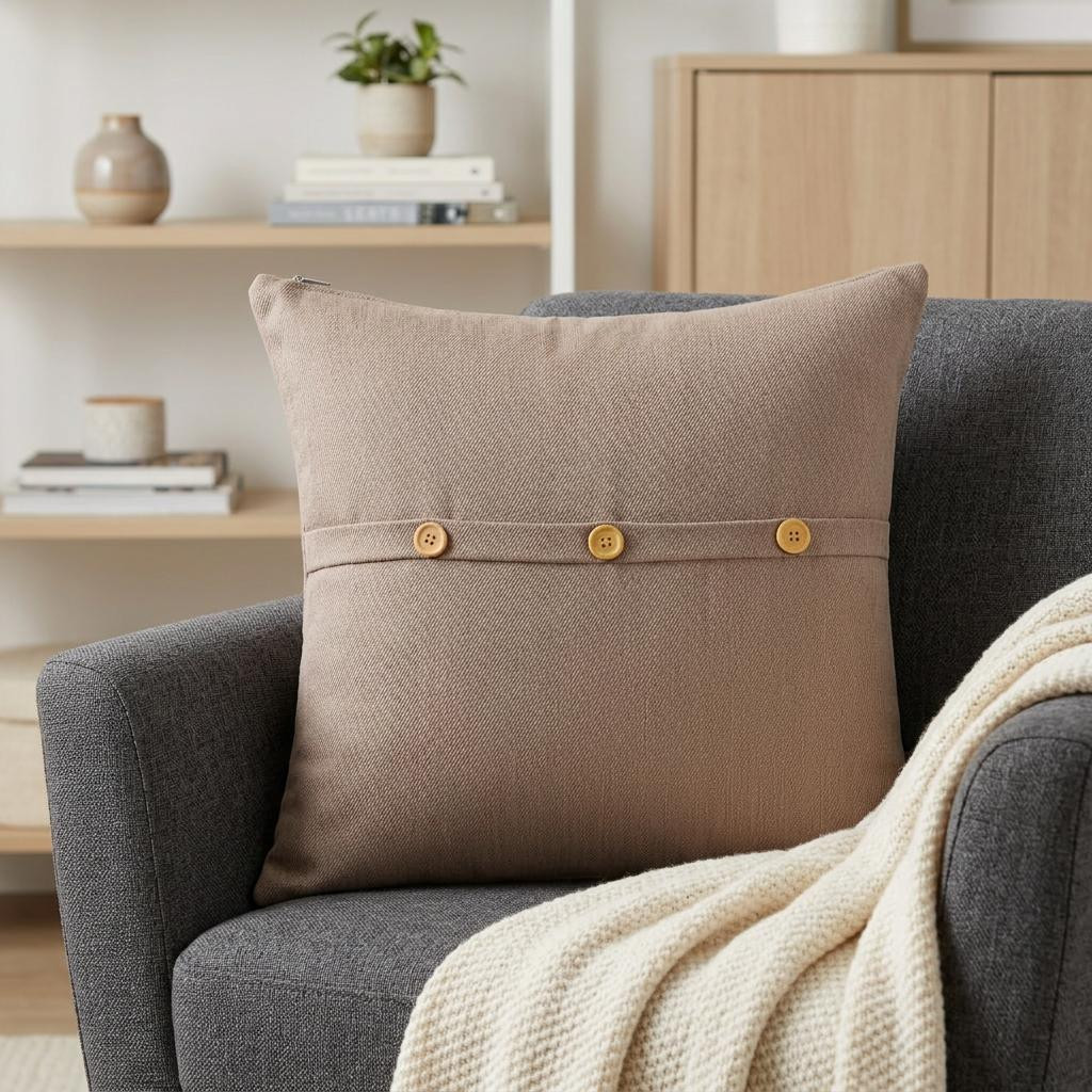 20" brown cotton pillow buttons, brown cotton pillow buttons edges, cotton pillow buttons edges, brown cotton pillow buttons, cotton pillow buttons |