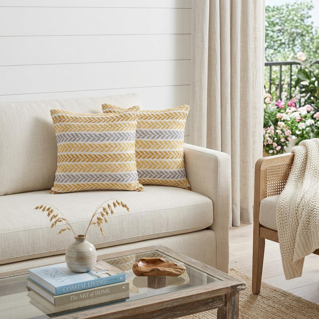 Chevron, Pillow, Throw Pillow, Décor, Home, LR Home, Stripes, Insert, Cover, Style, Apartment, Dorm, Accessory, India, Handmade, Hand Stitched, Imported, Fashion, Yellow, Gray, Bright, Pastel |