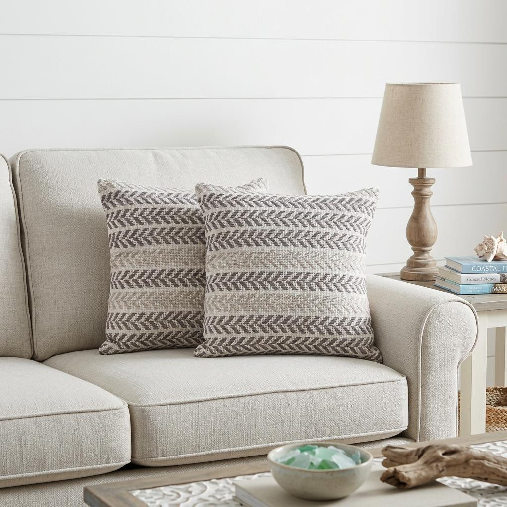 This set of two 18-inch x 18-inch gray beach chevron cotton zippered pillow will add a beautiful decorative accent to your decor. These super soft pillows are expertly made of high grade, long lasting 100% cotton in a gray coloration. Super soft and built to hold its shape, this polyfill pillow is a great option. Decorative throw pillows not only add color and dimension to your space but can be comfy and supportive when you are lounging and cuddling as well. A great decorative accessory for your favorite chair, to accent your sofa, or to use as part of your bed ensemble. 18-inch H x 18-inch W x 4-inch D