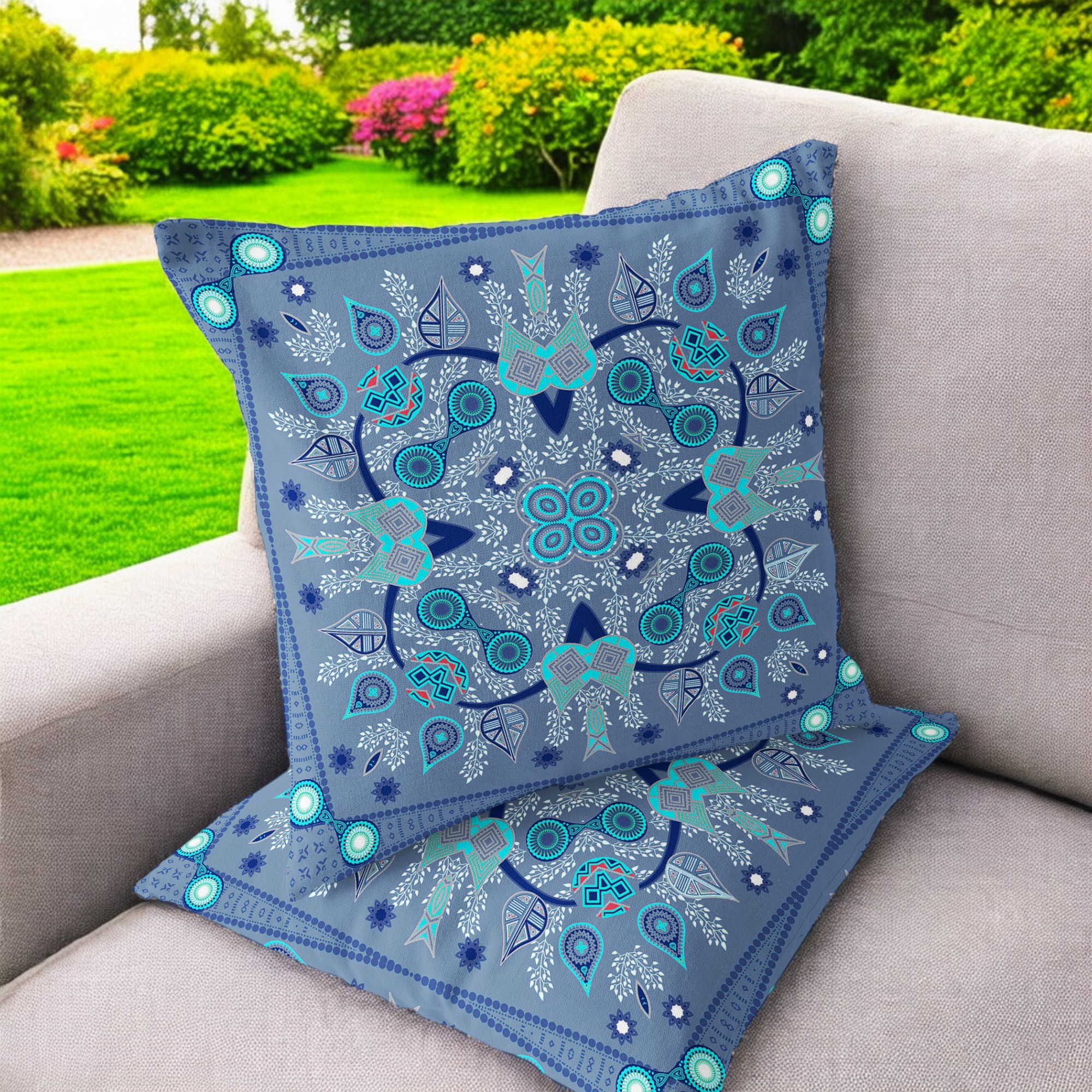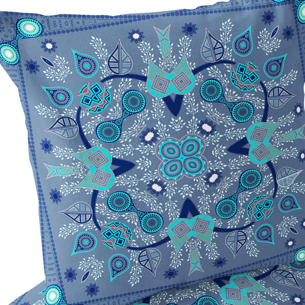 Paisley Leaf Geo Indoor/Outdoor Set of 2 Pillows in Dark Muted Blue Navy Light Blue