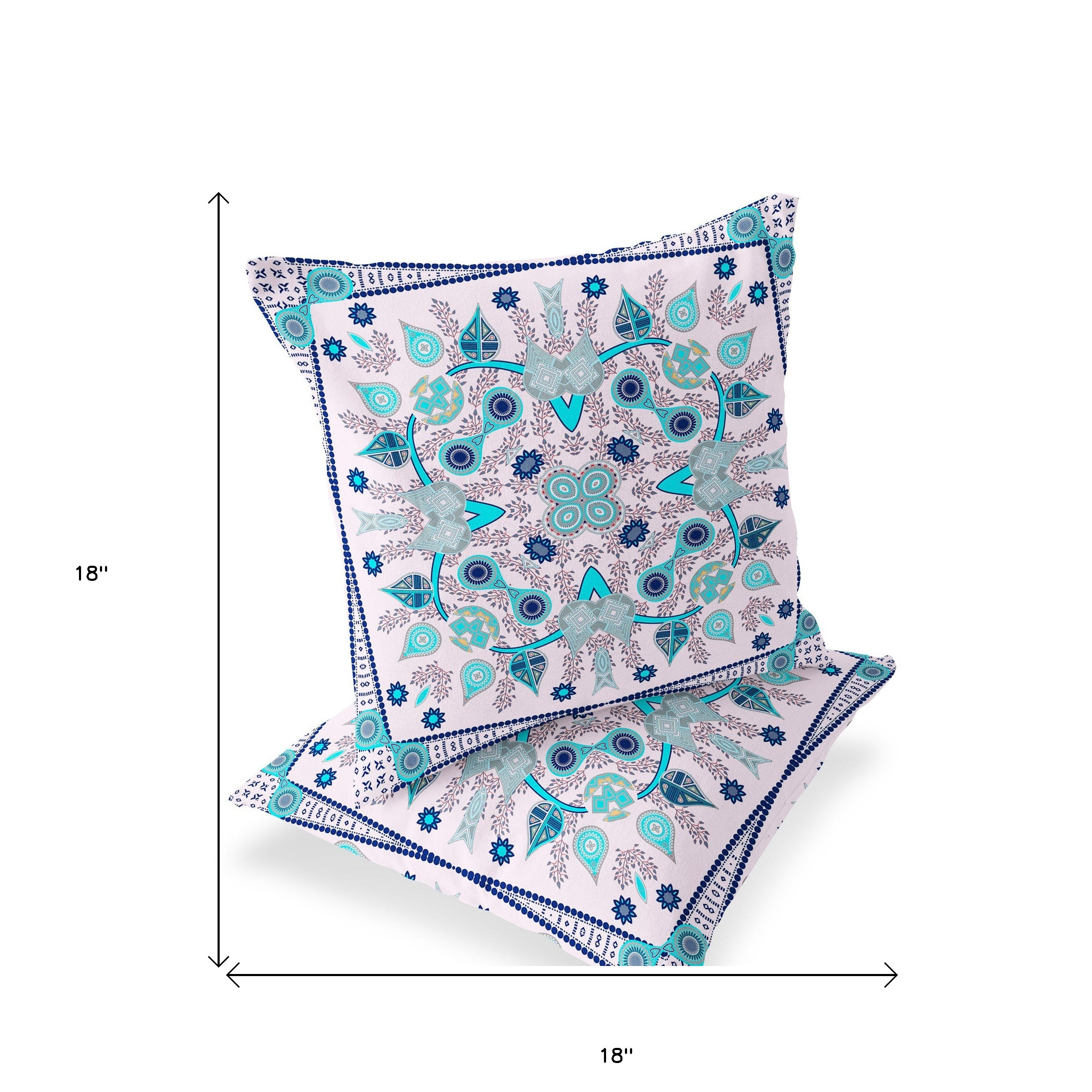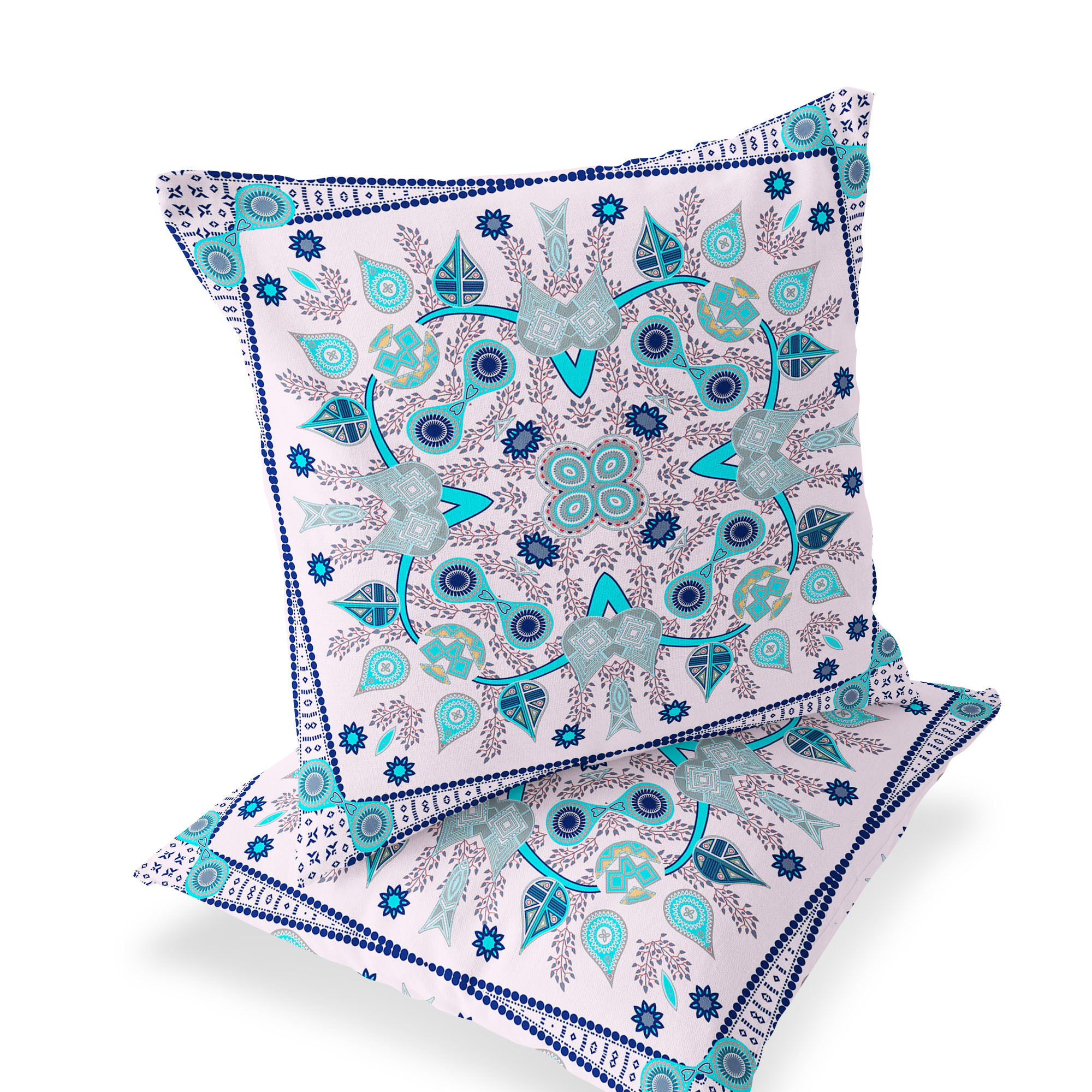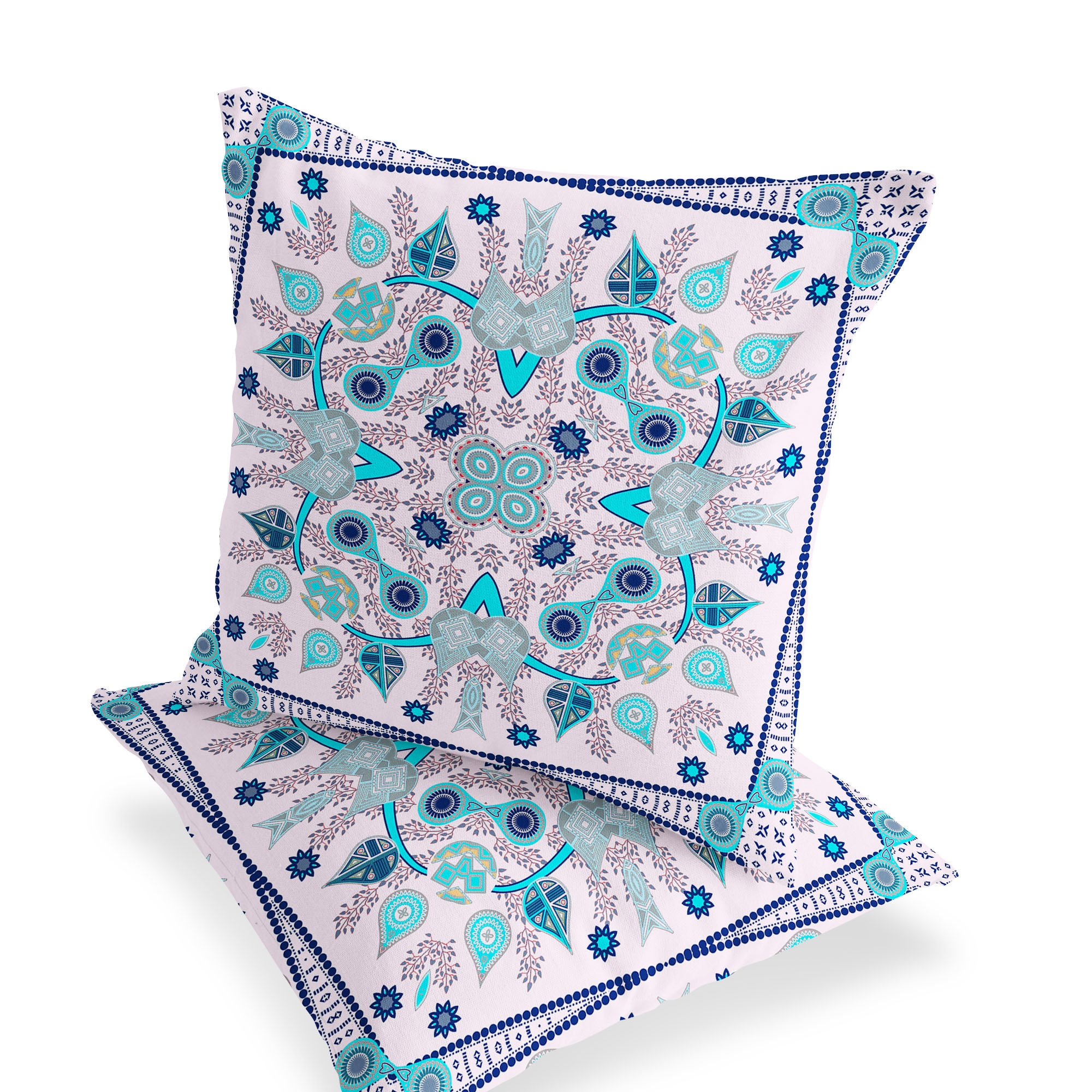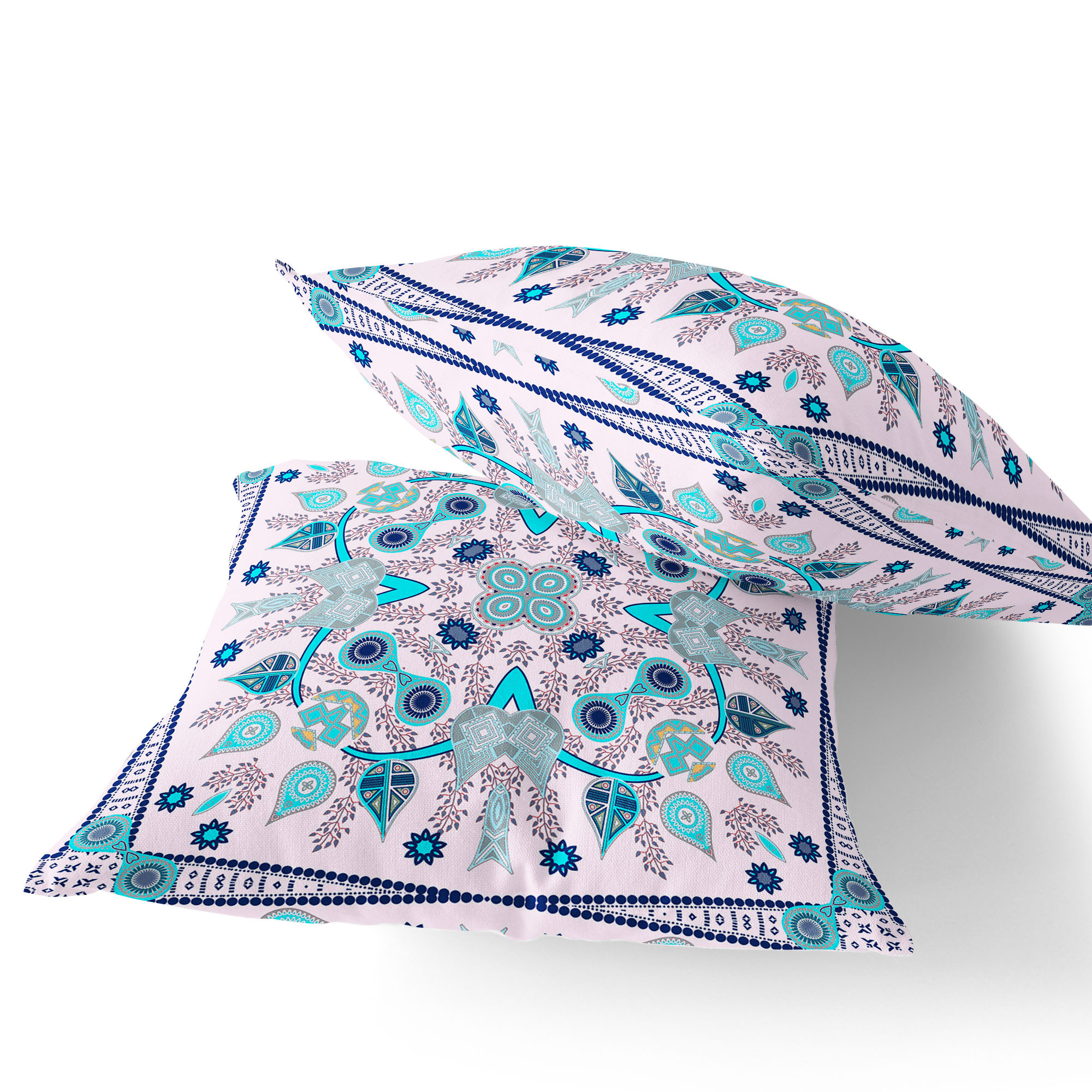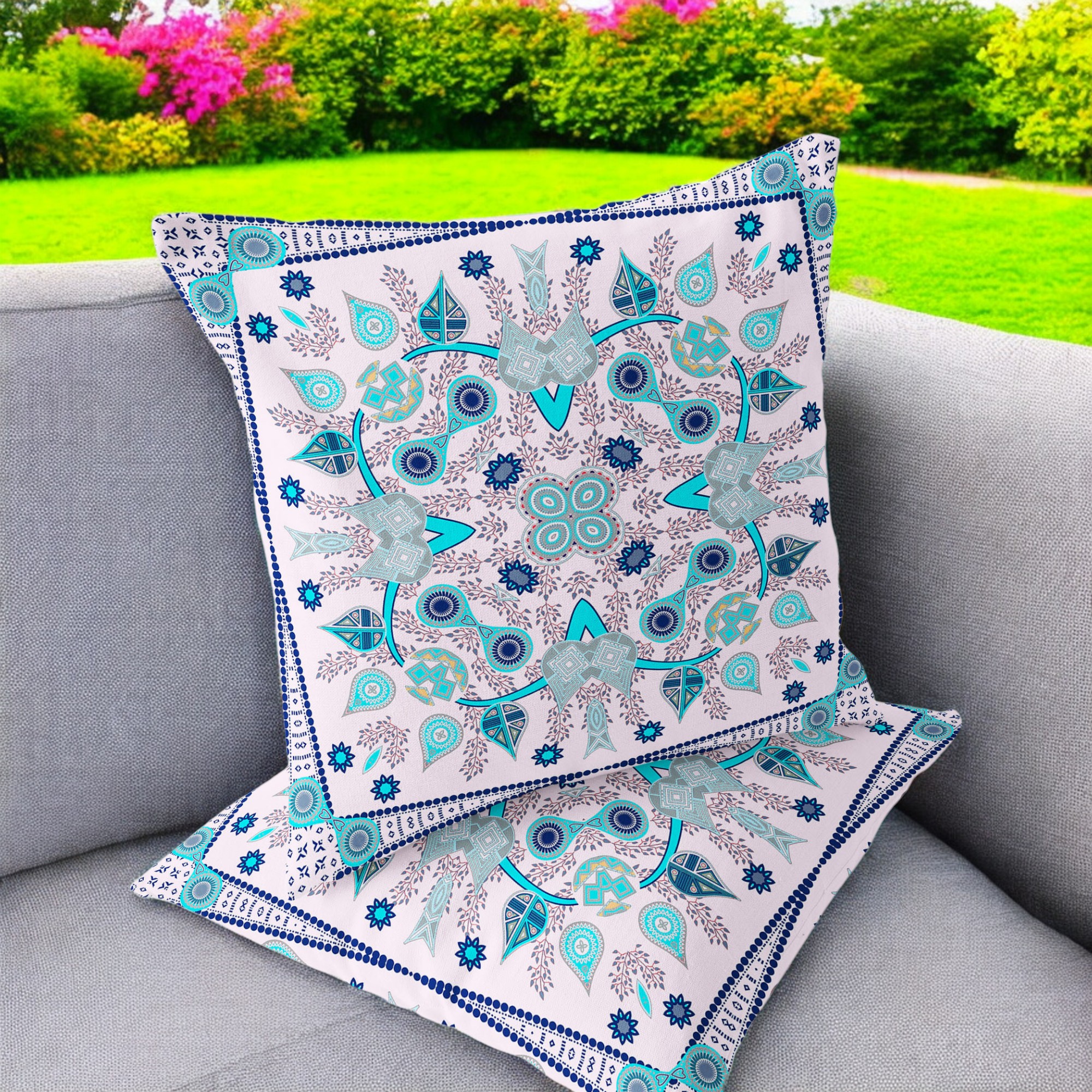 Paisley Leaf Geo Indoor/Outdoor Set of 2 Pillows in Light Pink Light Blue Navy Blue