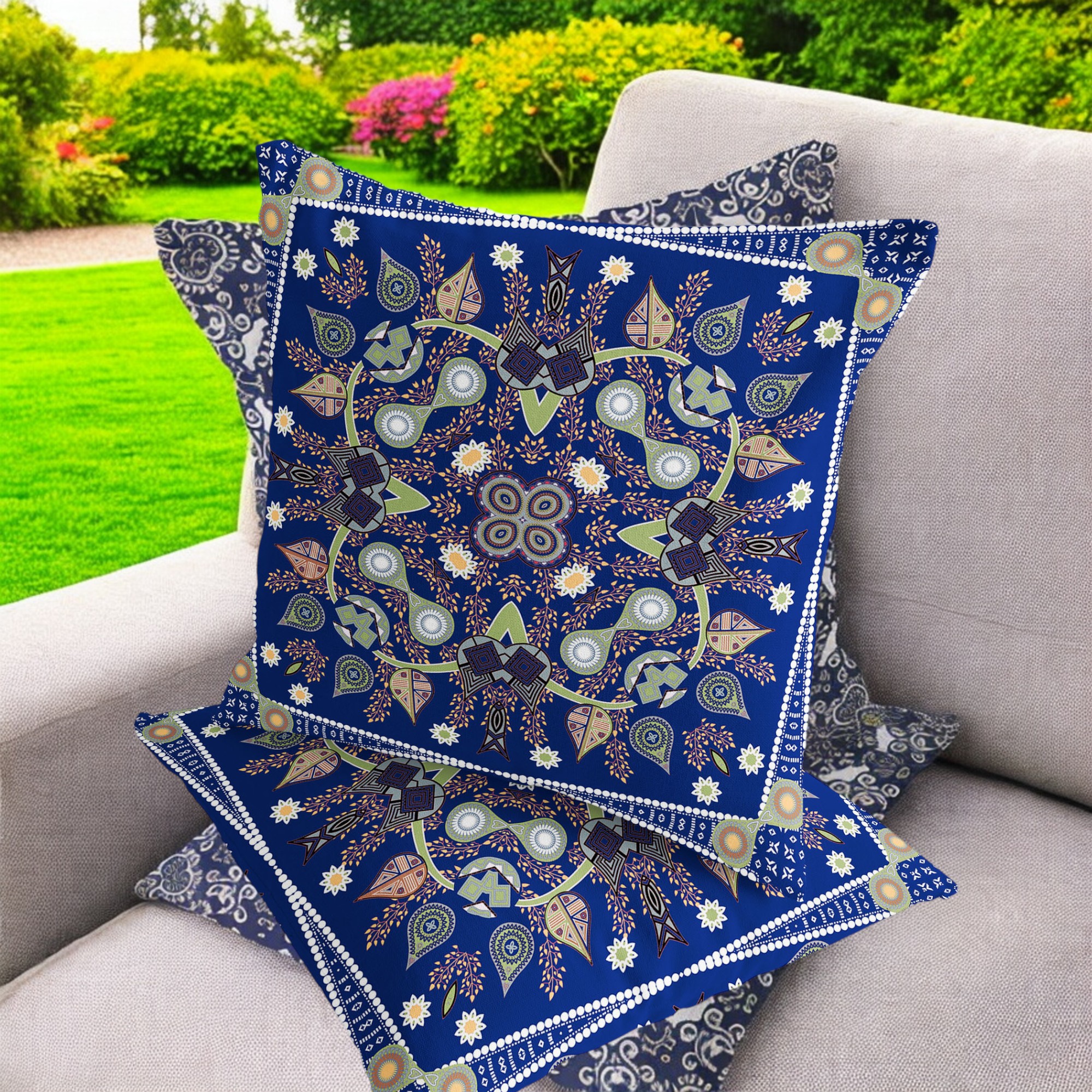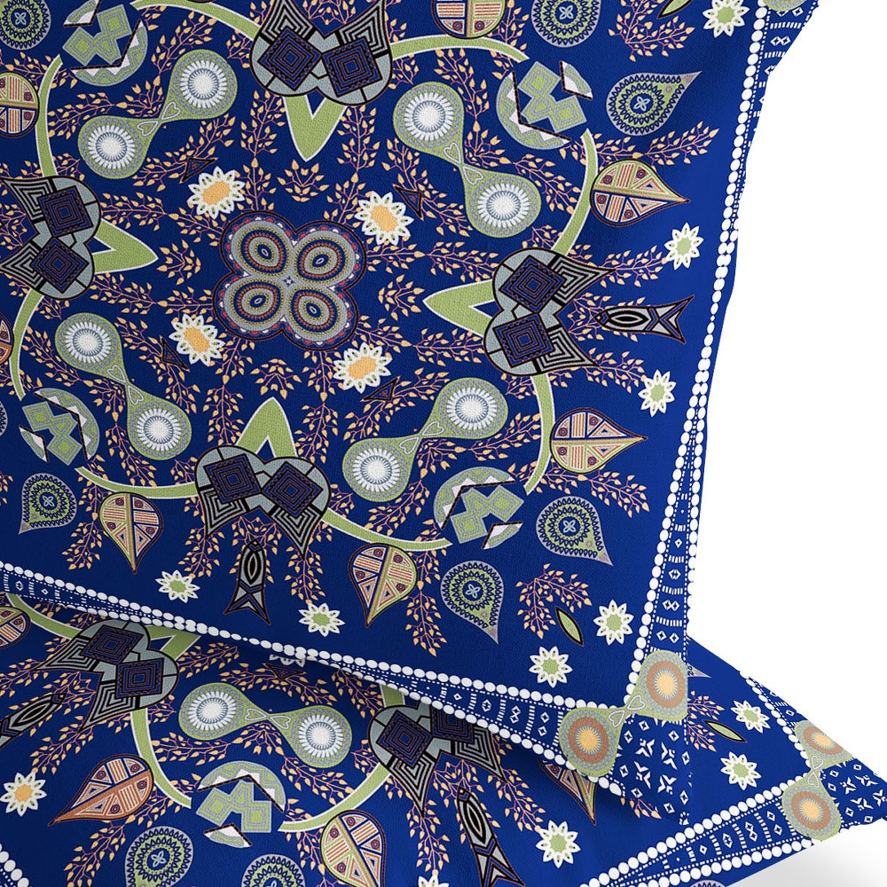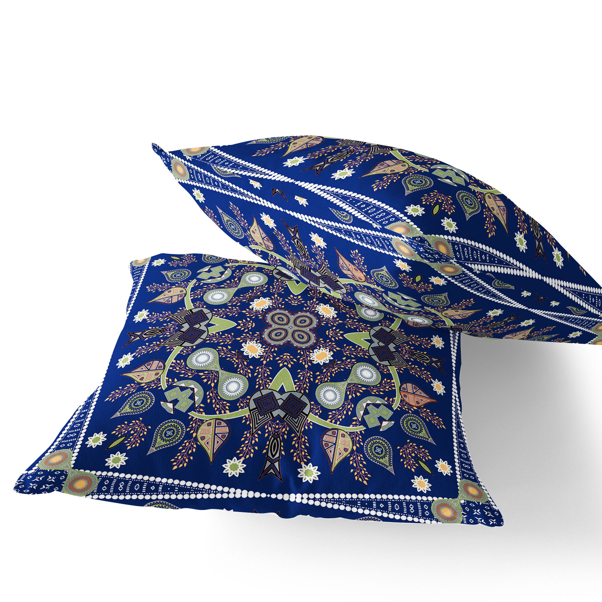 Paisley Leaf Geo Indoor/Outdoor Set of 2 Pillows in Midnight Blue Light Green