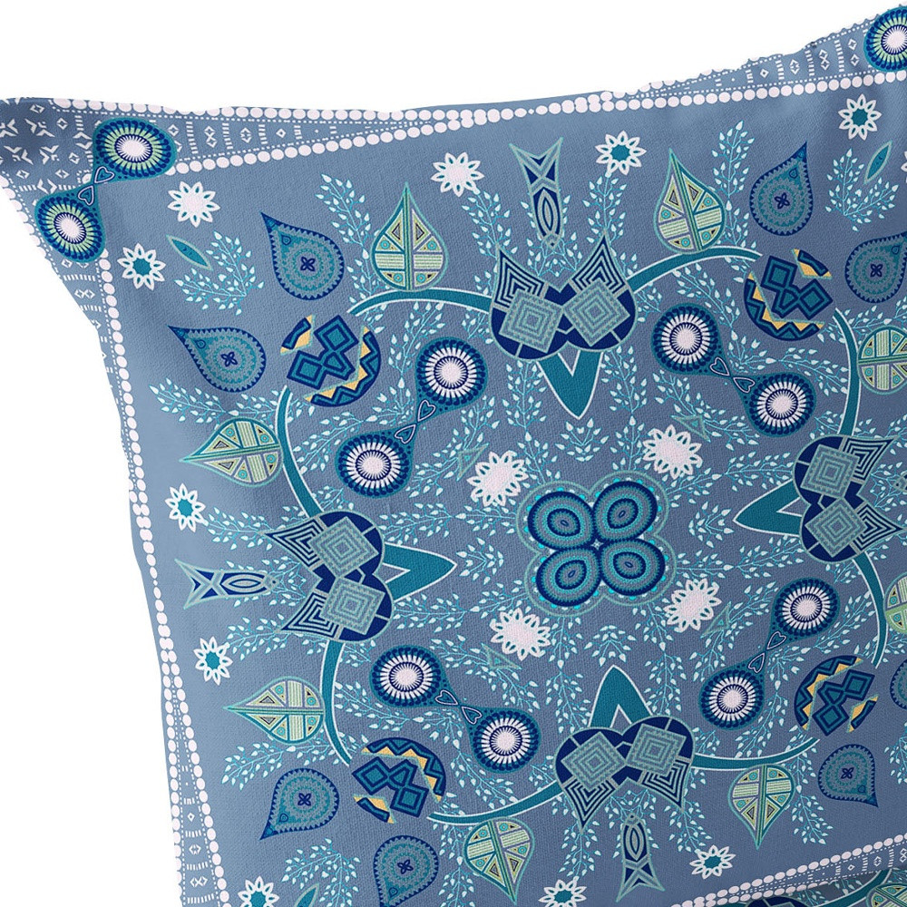 Paisley Leaf Geo Indoor/Outdoor Set of 2 Pillows in Muted Blue White