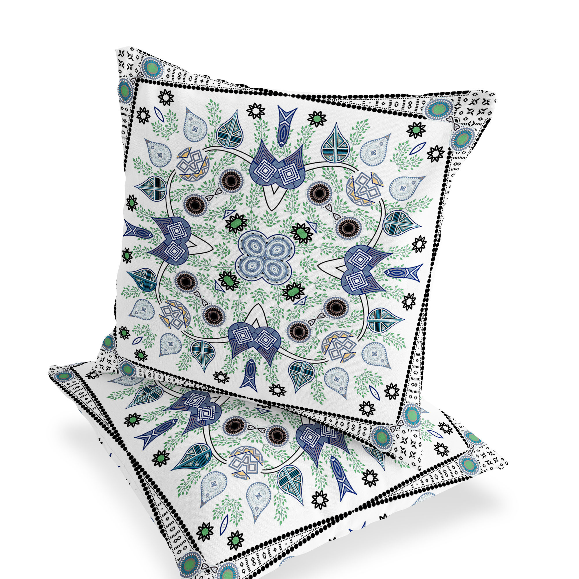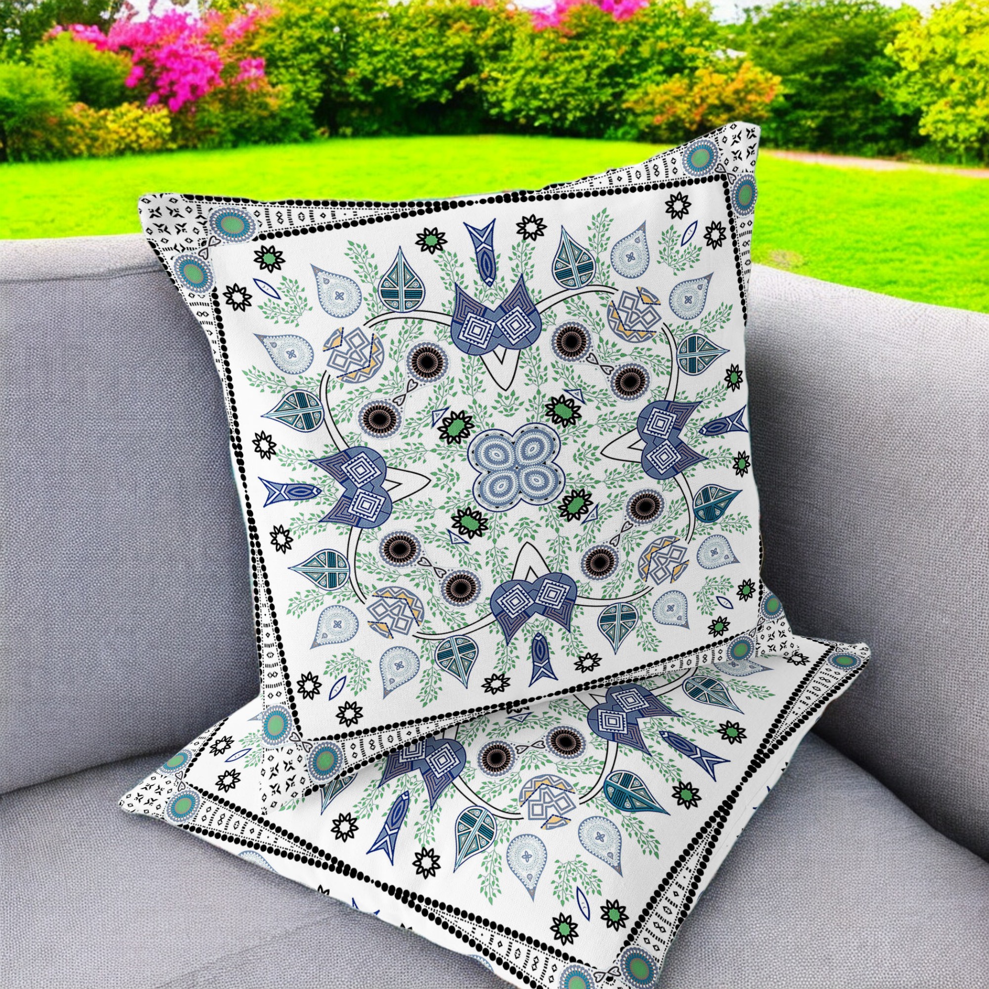 Paisley Leaf Geo Indoor/Outdoor Set of 2 Pillows in Off-White Gray Muted Blue