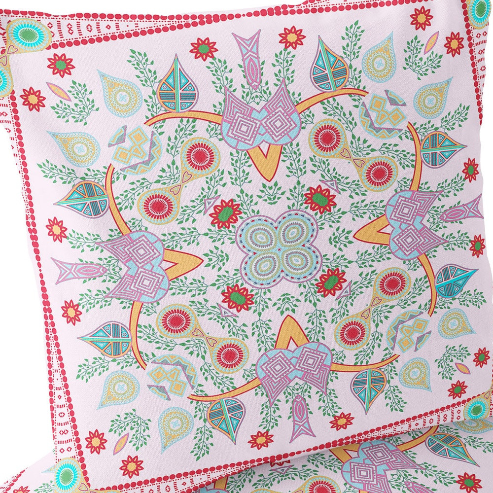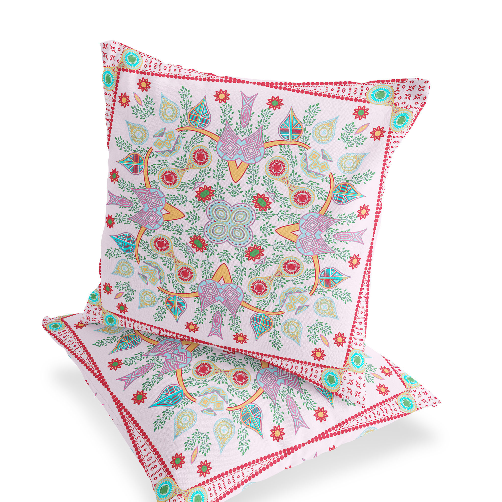 Paisley Leaf Geo Indoor/Outdoor Set of 2 Pillows in White Pink Red