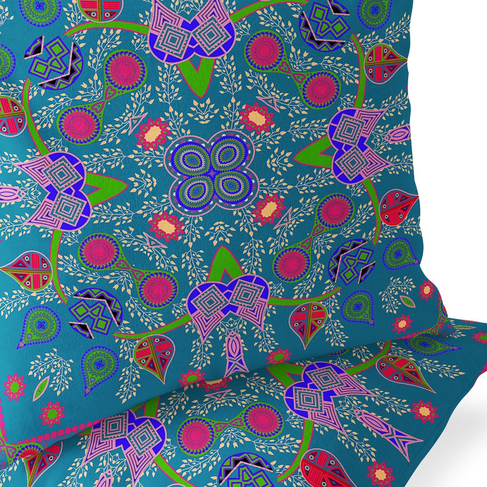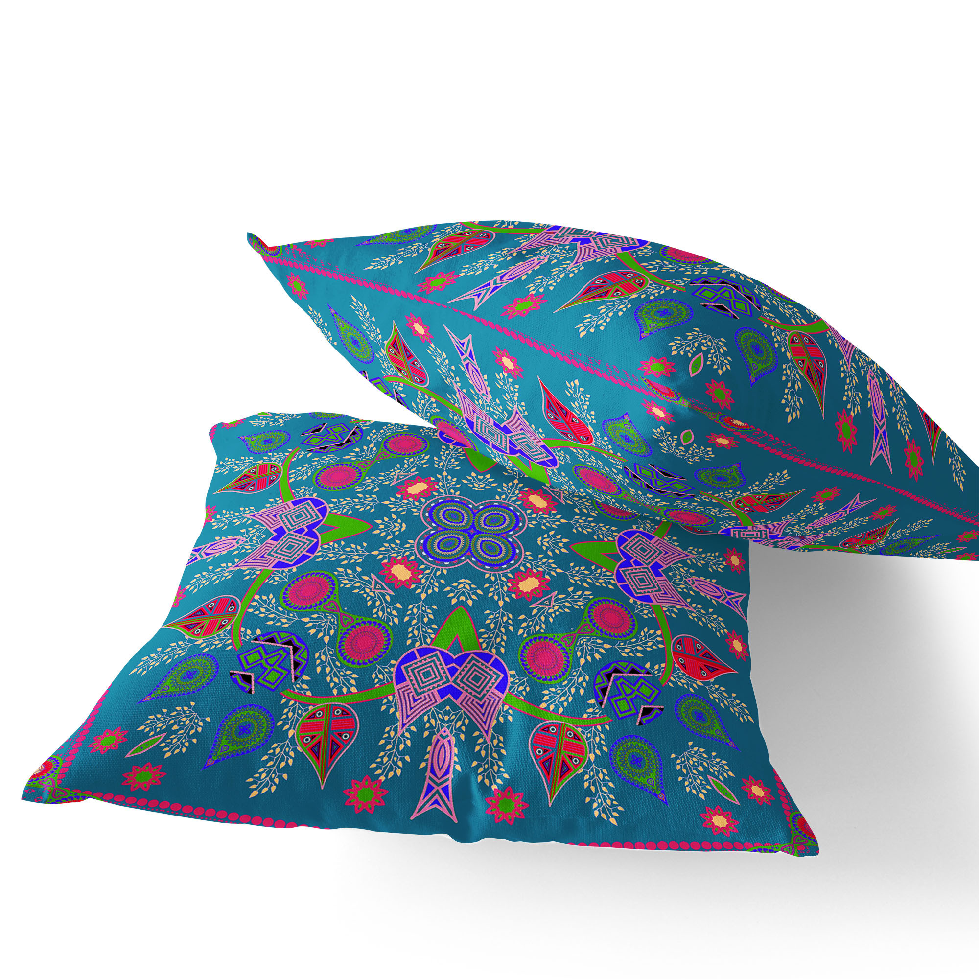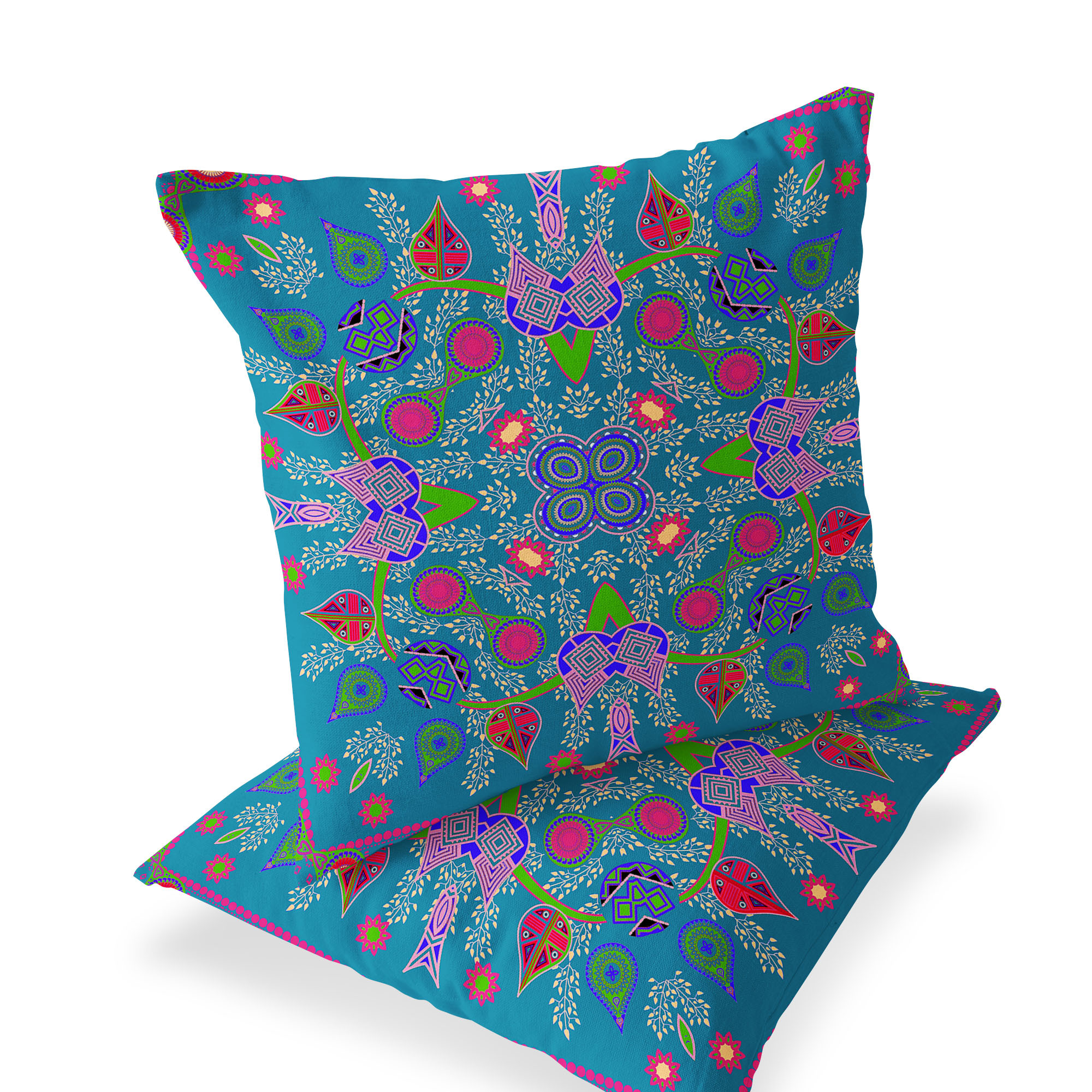 Paisley Pattern Square Indoor/Outdoor Set of 2 Pillows in Dark Muted Blue Pink Green