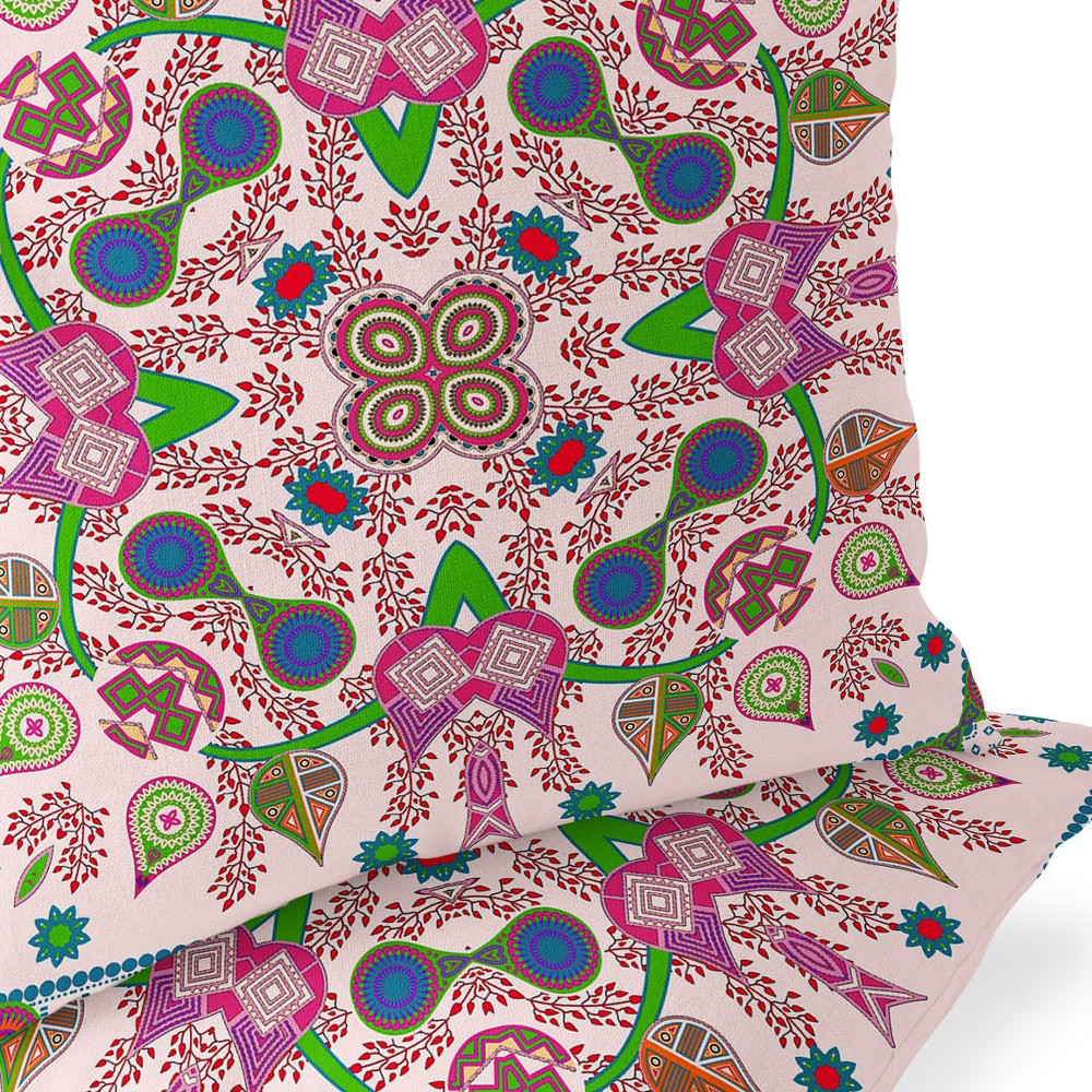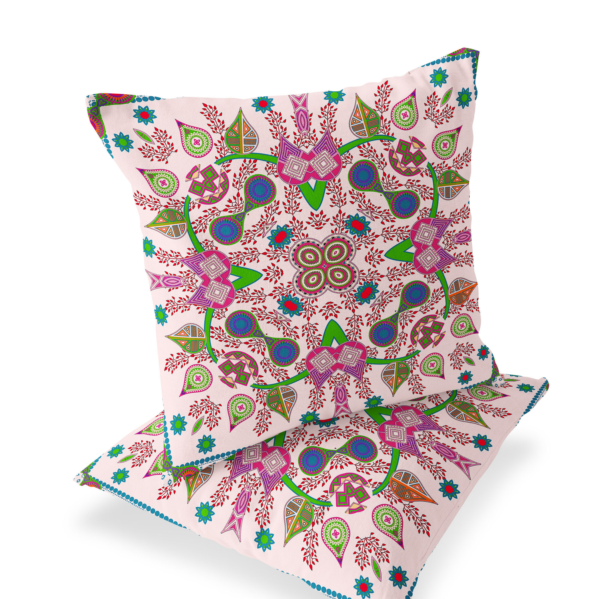 Paisley Pattern Square Indoor/Outdoor Set of 2 Pillows in Light Pink Purple Green