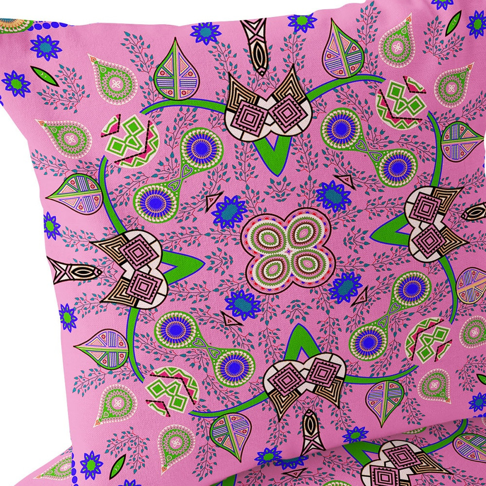 Paisley Pattern Square Indoor/Outdoor Set of 2 Pillows in Pink Blue Green