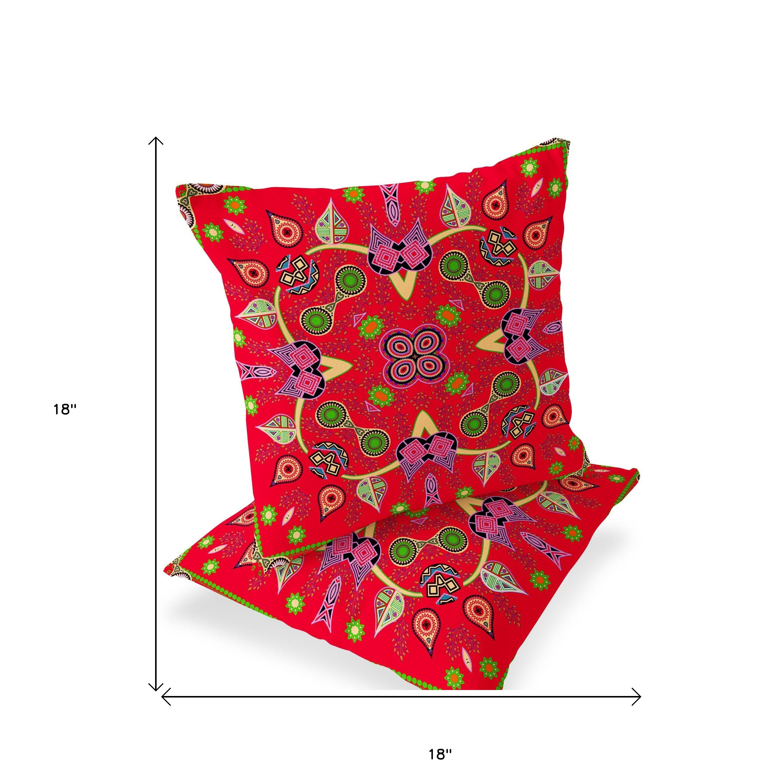 Paisley Pattern Square Indoor/Outdoor Set of 2 Pillows in Red