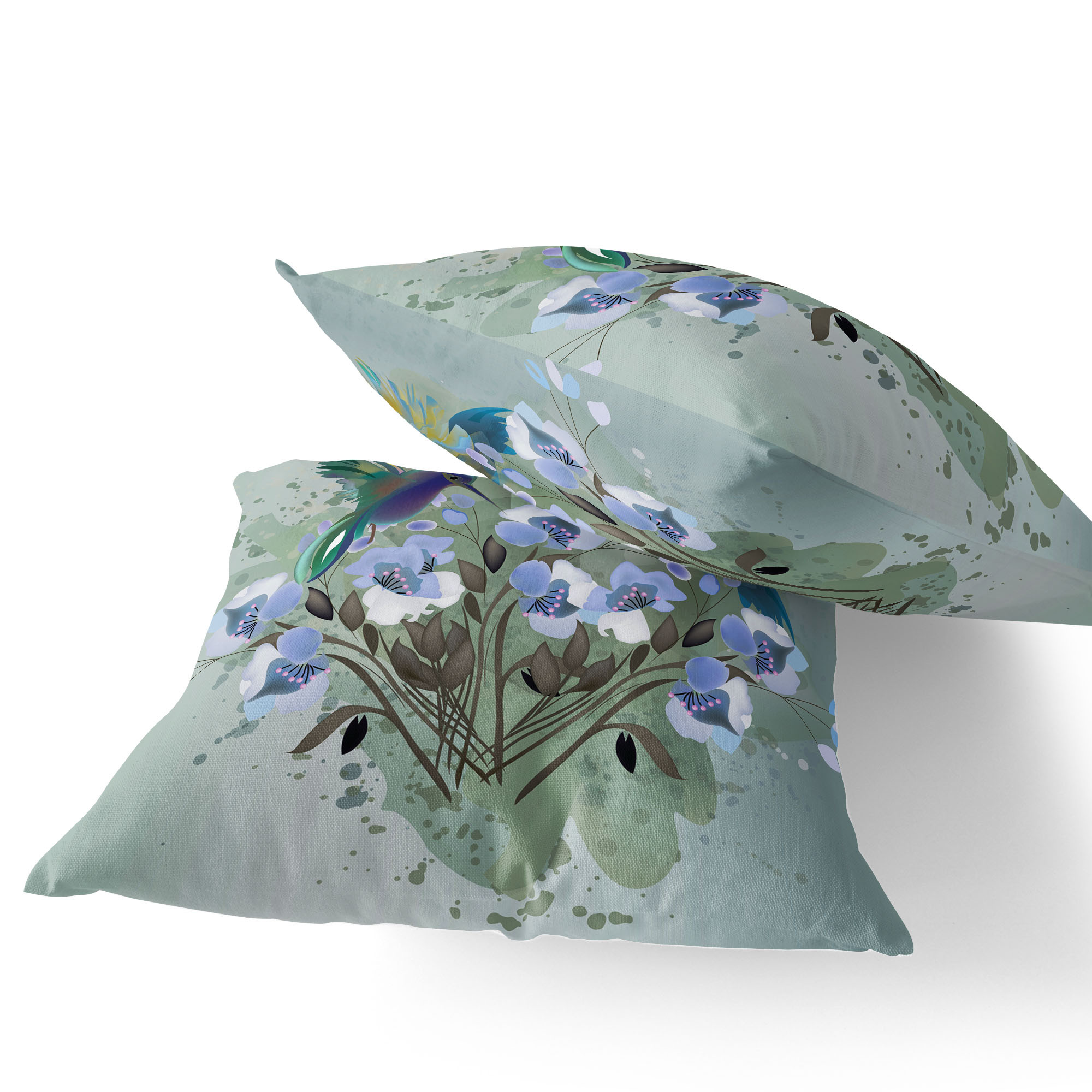 Set of Two Green Bird Indoor Outdoor Throw Pillow