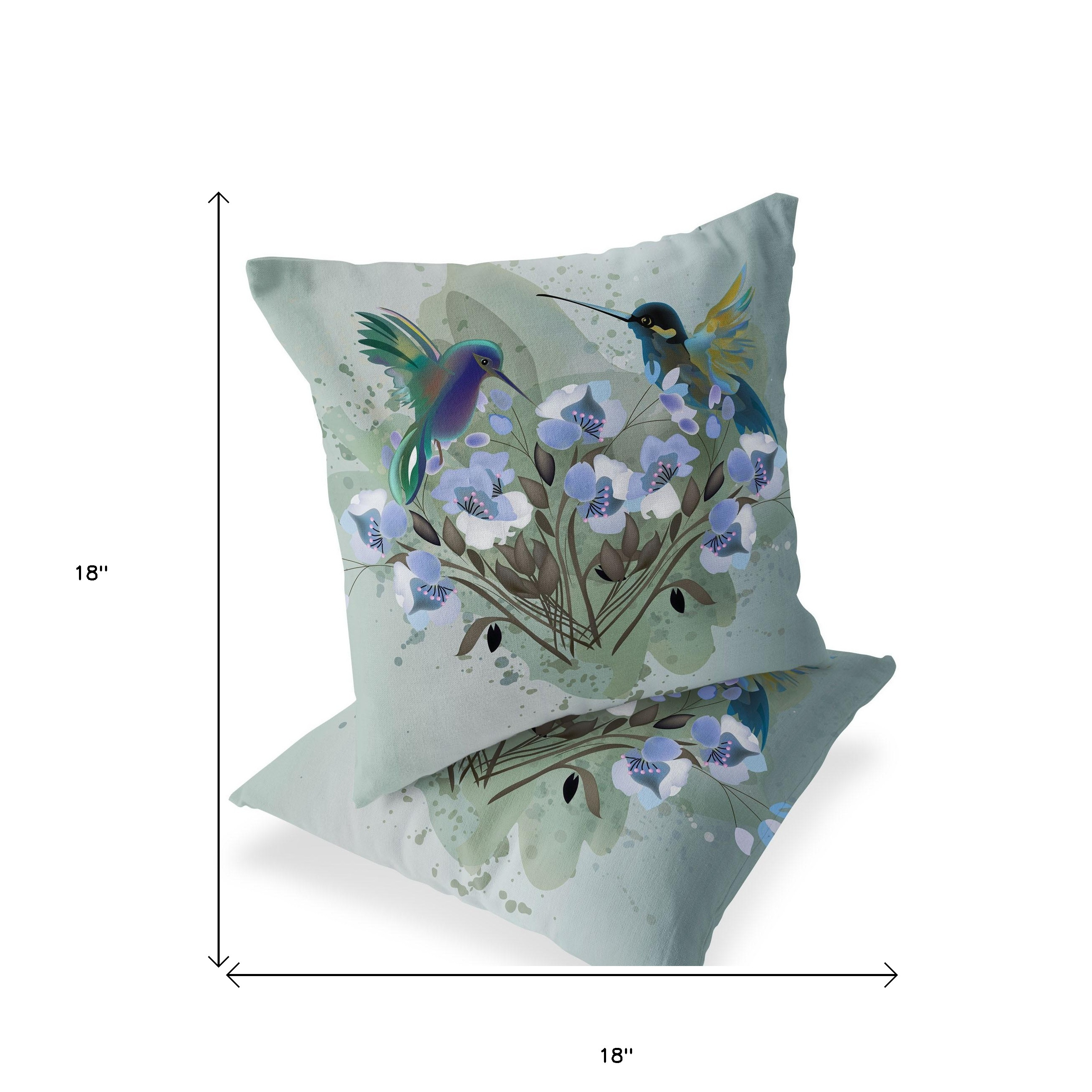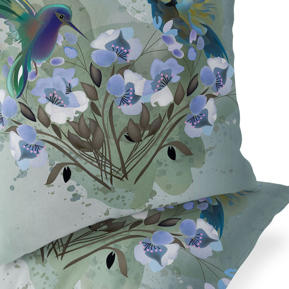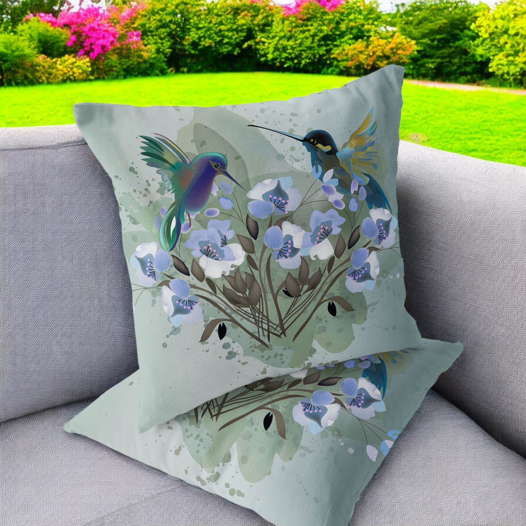 Hummingbird Love Indoor/Outdoor Set of 2 Pillows in Green Blue