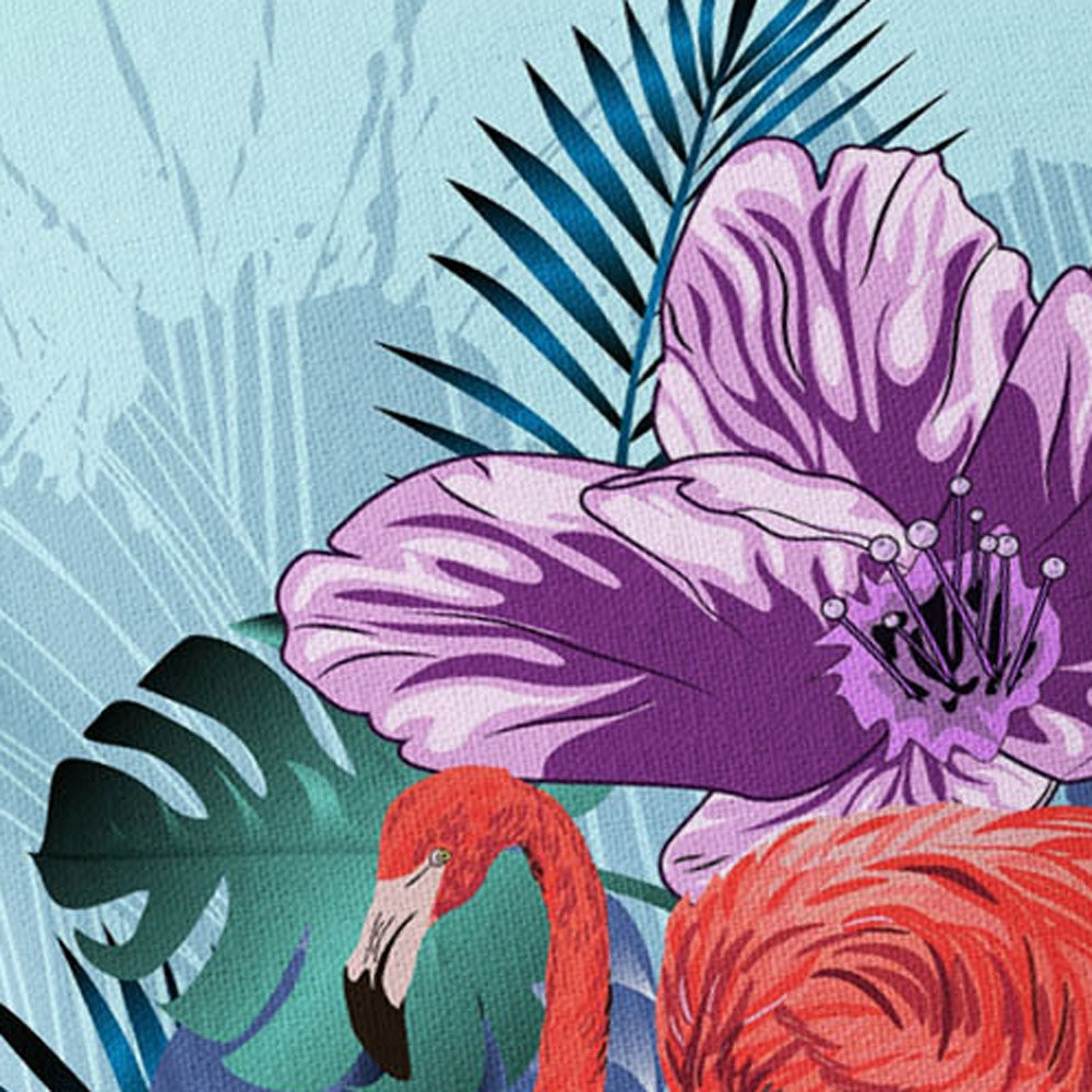 Flamingo with Flower Indoor/Outdoor Set of 2 Pillows in Blue Purple Brown