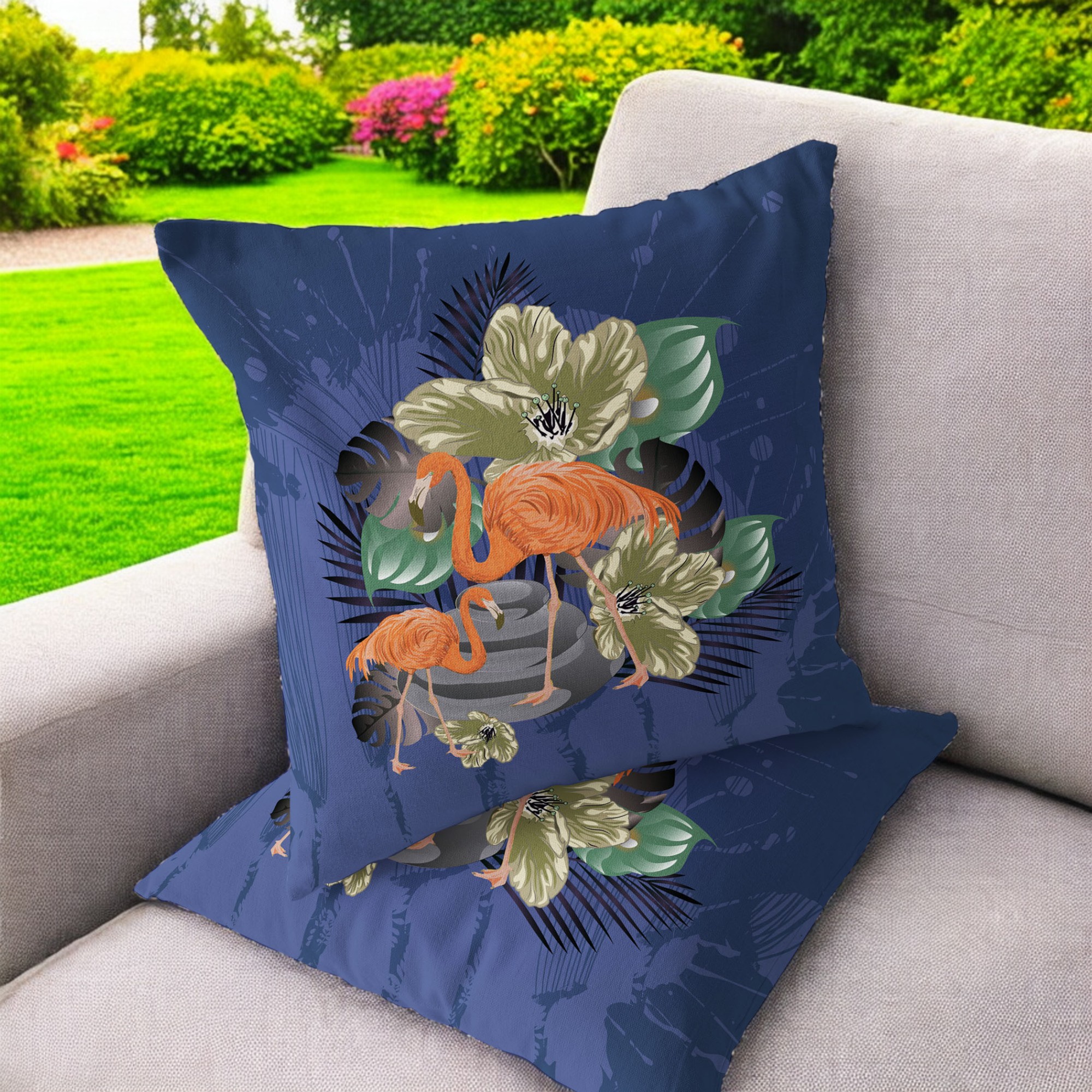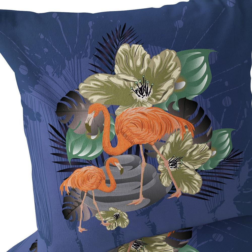 Flamingo with Flower Indoor/Outdoor Set of 2 Pillows in Green Black Blue