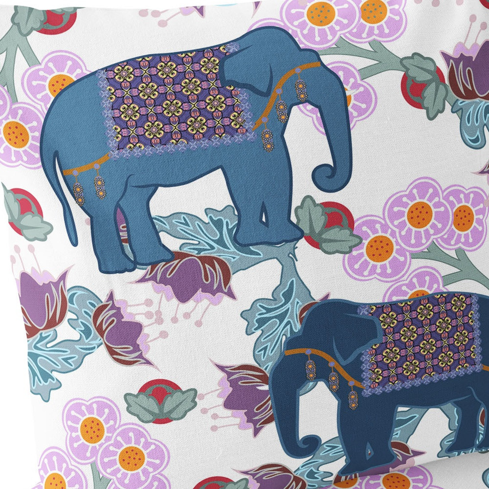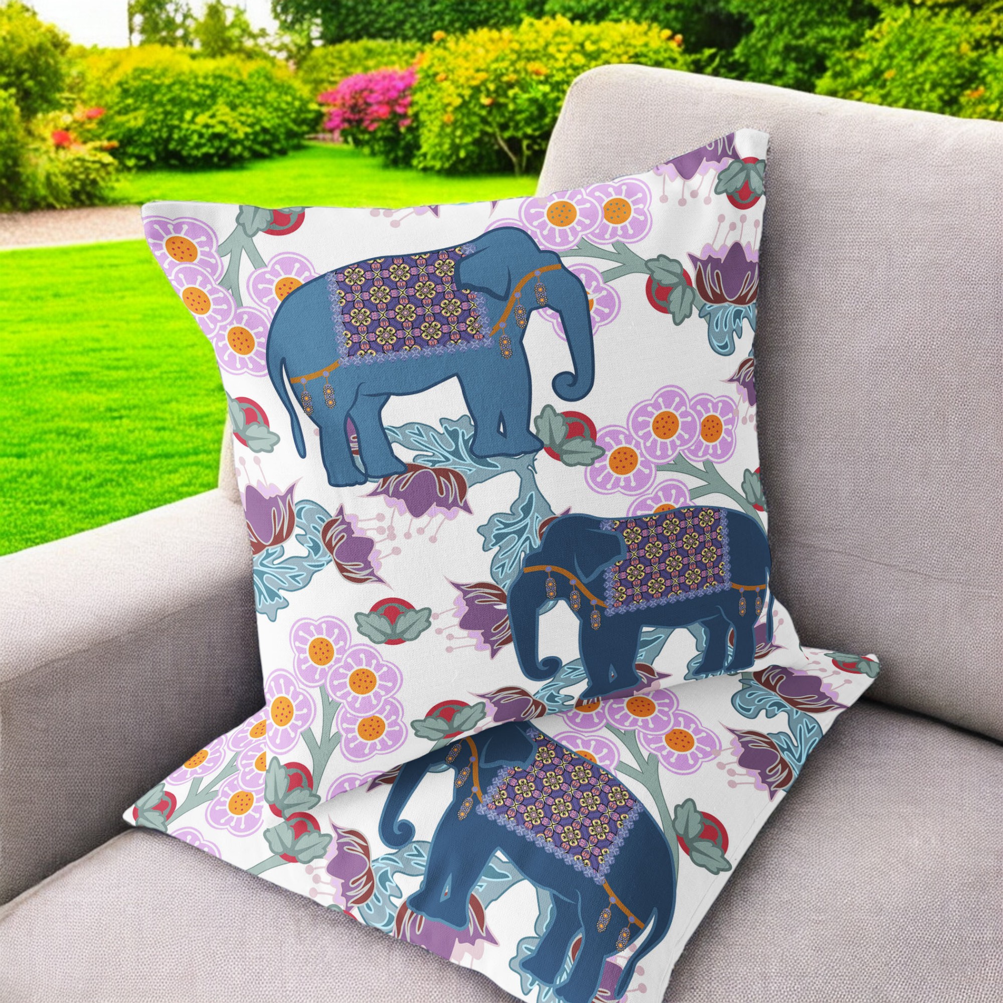 Two Elephants Indoor/Outdoor Set of 2 Pillows in Blue Pink Gray